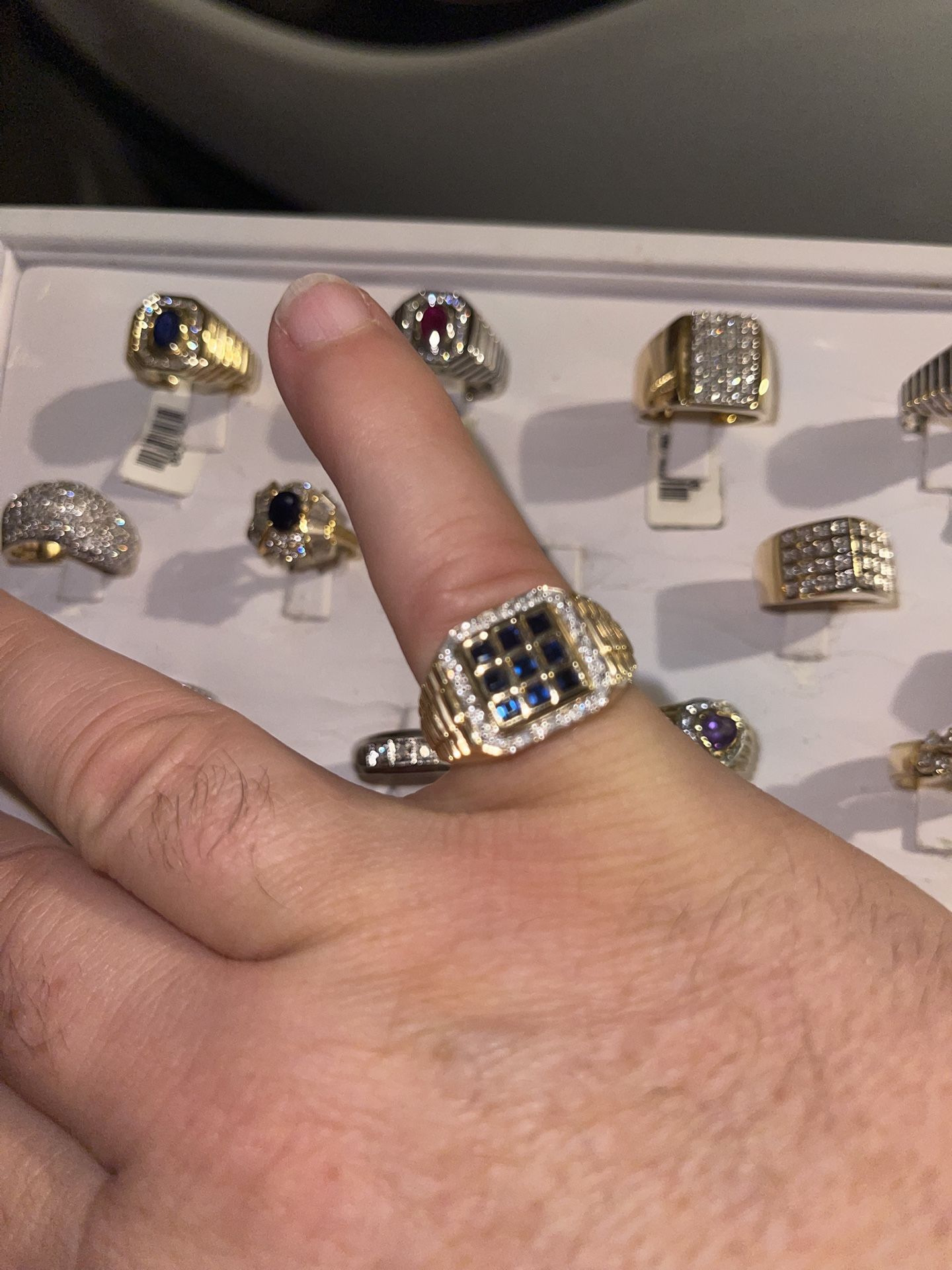 Men’s Rolex ring 14 karat gold. Sapphire Square stones line by natural white diamonds. All set in a Rolex setting in 14 karat gold. New wholesale merchandise. Closed manufacture and need to liquidate.
