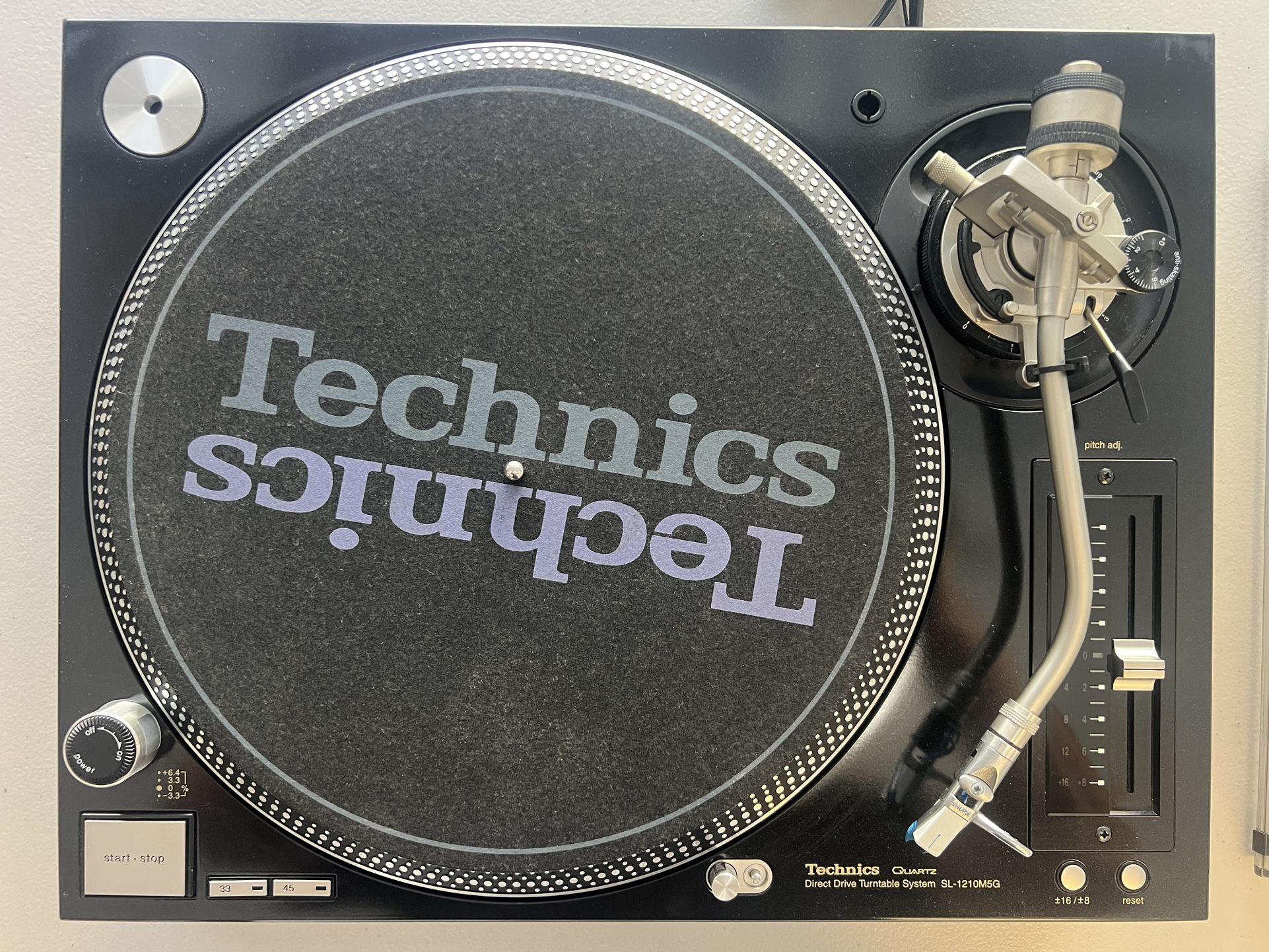 Excellent condition Technics 1210M5G. All original and comes with dust cover and Sure White label Stylus. Not internally grounded. Always used as a 3rd deck so not a whole lot of mileage on this unit.