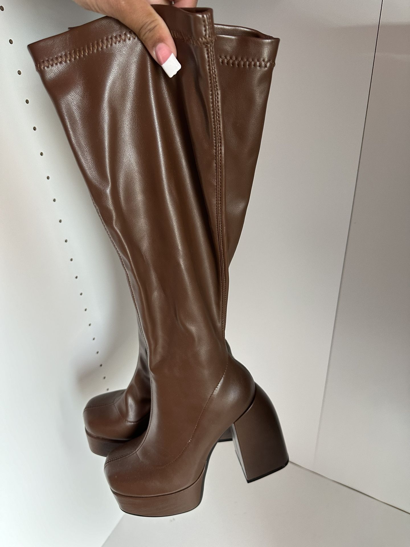 Brown Calf High Platform Boot