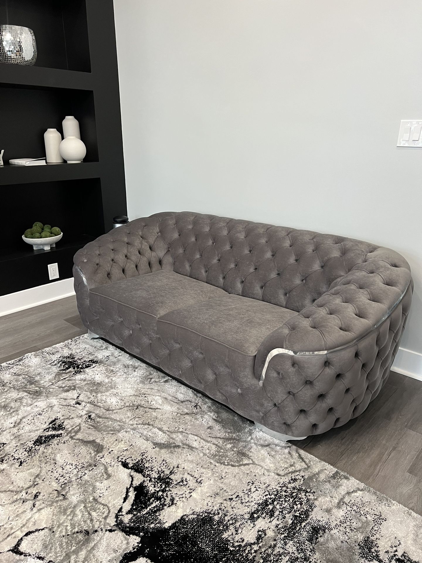 Took one out of the cover for pictures but the other pieces are wrapped up it’s a brand new 3 pc living room set receipts and paperwork included