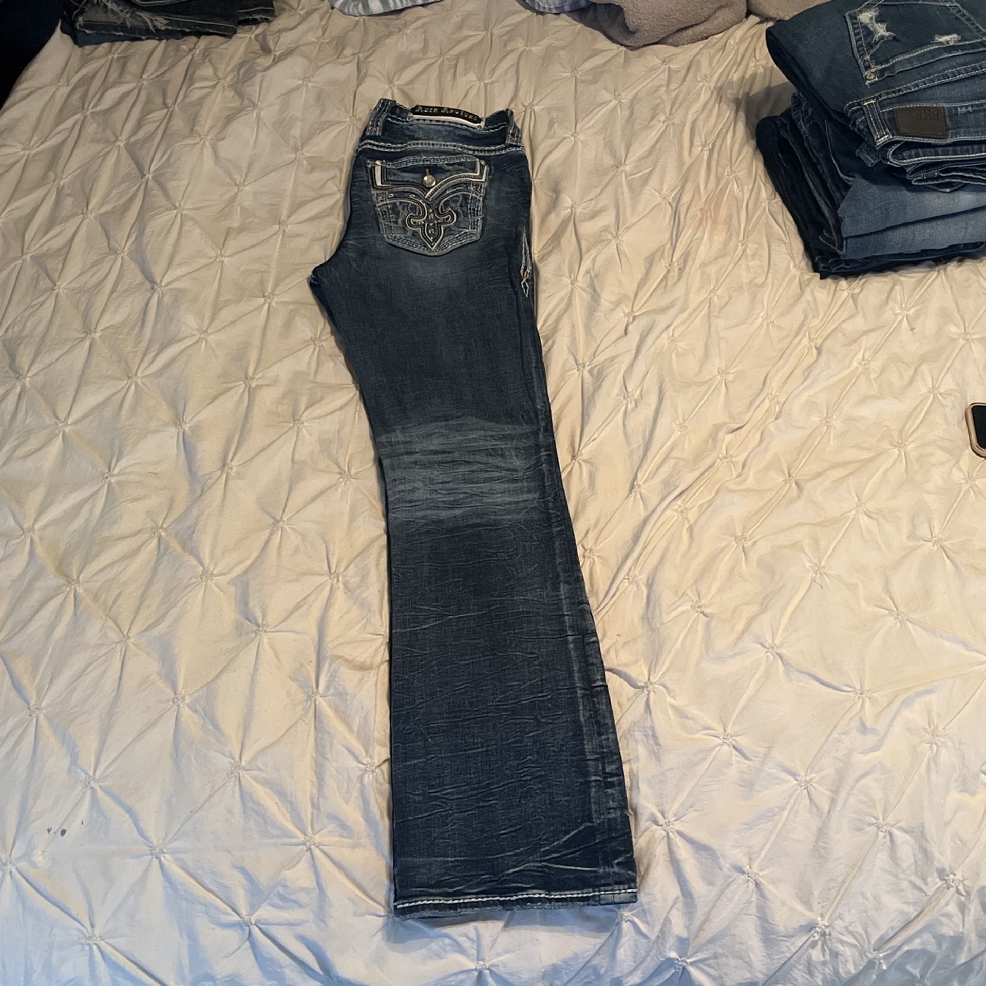 Hardly worn they are size 28 mid rise boot pants there name is “peacoat”