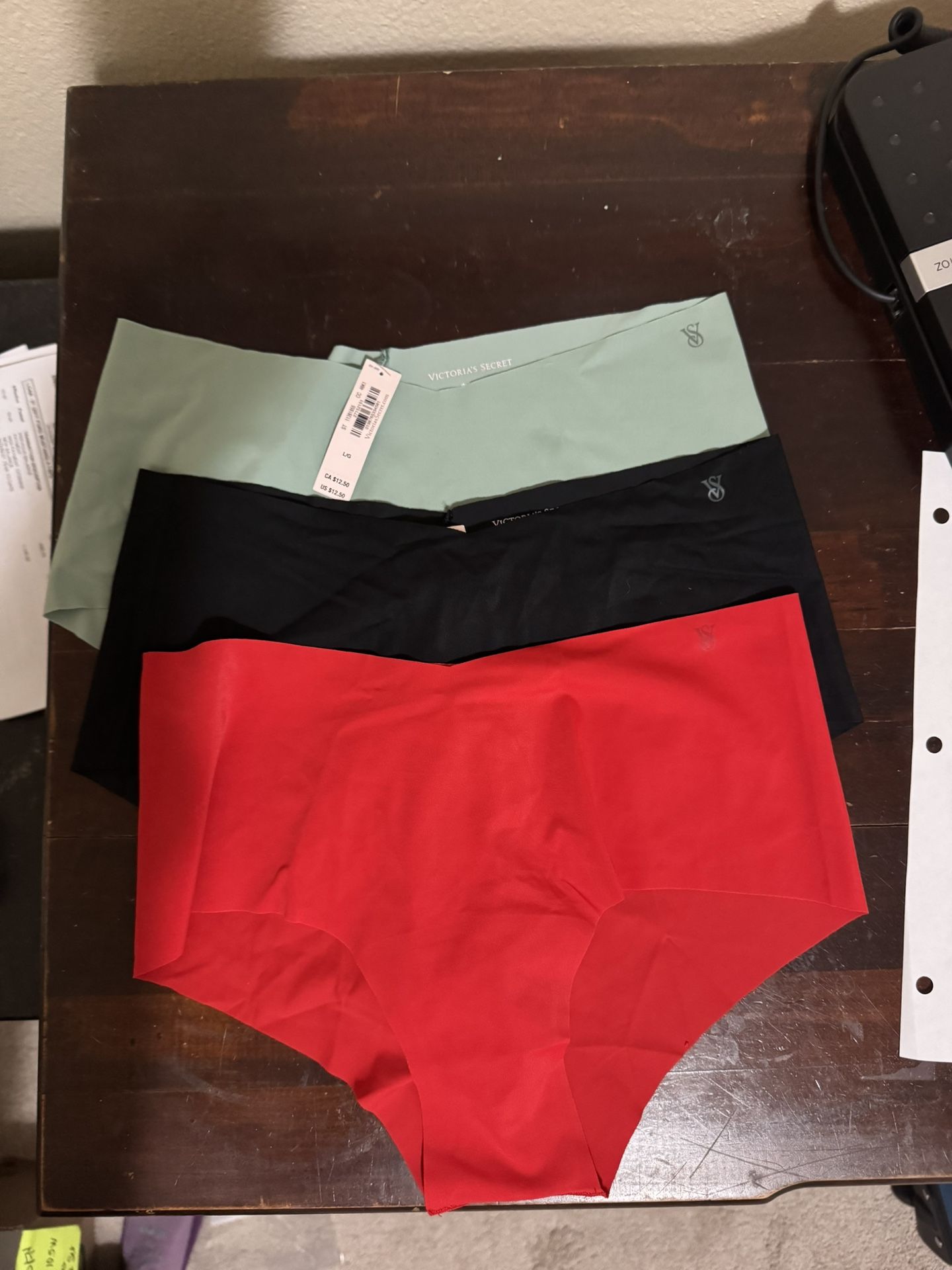 Womens Victoria Secret No Show Cheeky Panties NWT Size Large Black, Red & Green