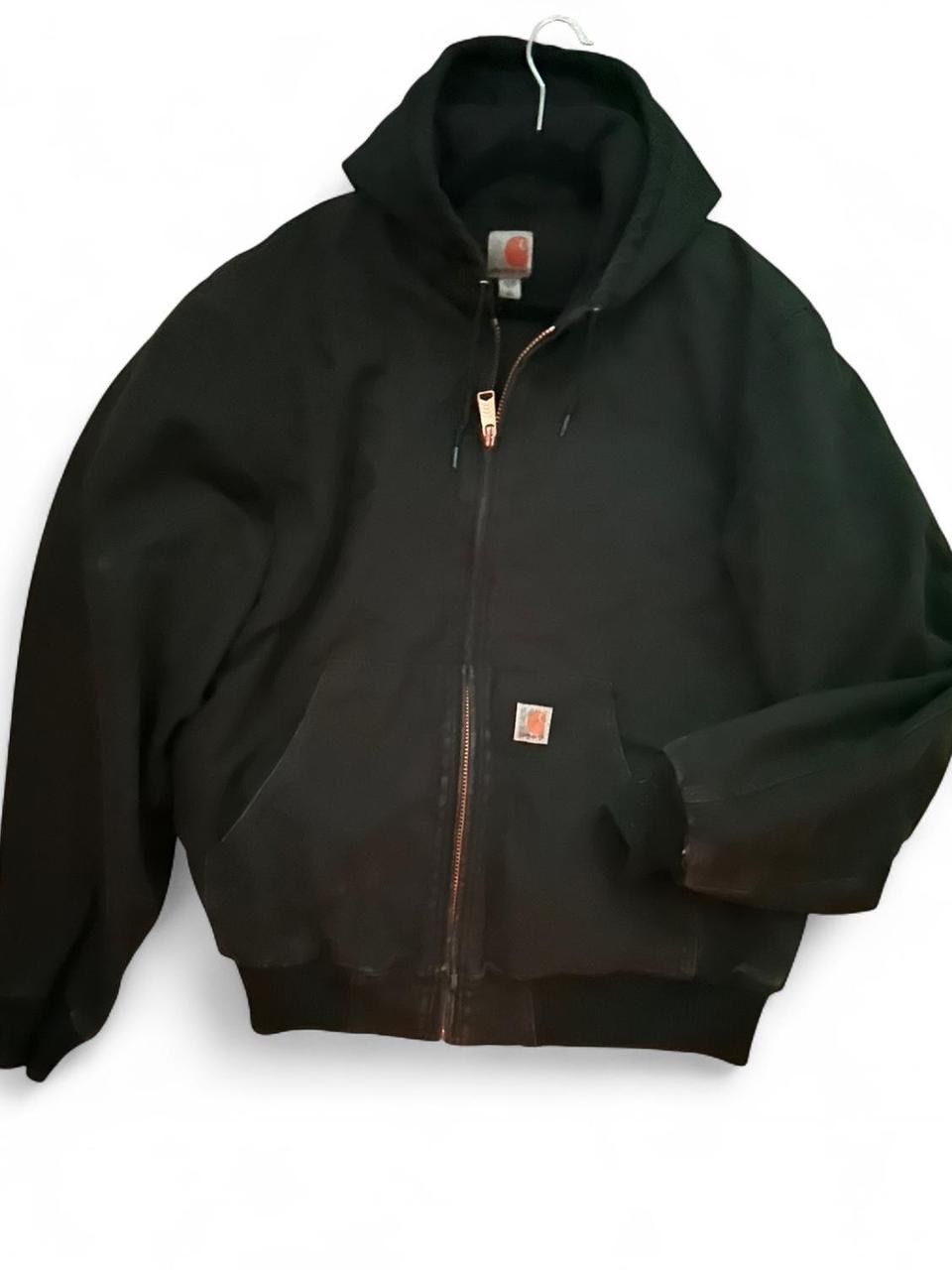 Vintage Carhartt Duck Active J140 Union Made in USA Black Coat With Hood