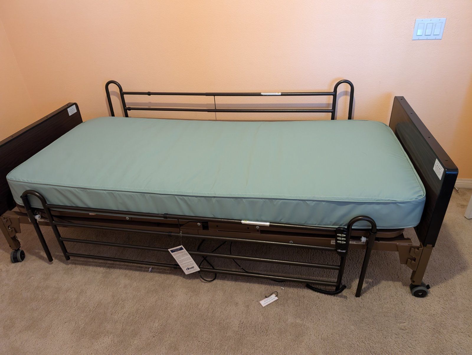 motorized frame that allows for adjustments to the head, foot, and overall bed height. These adjustments are typically controlled by a hand pendant, offering convenience for both the patient and caregiver.
