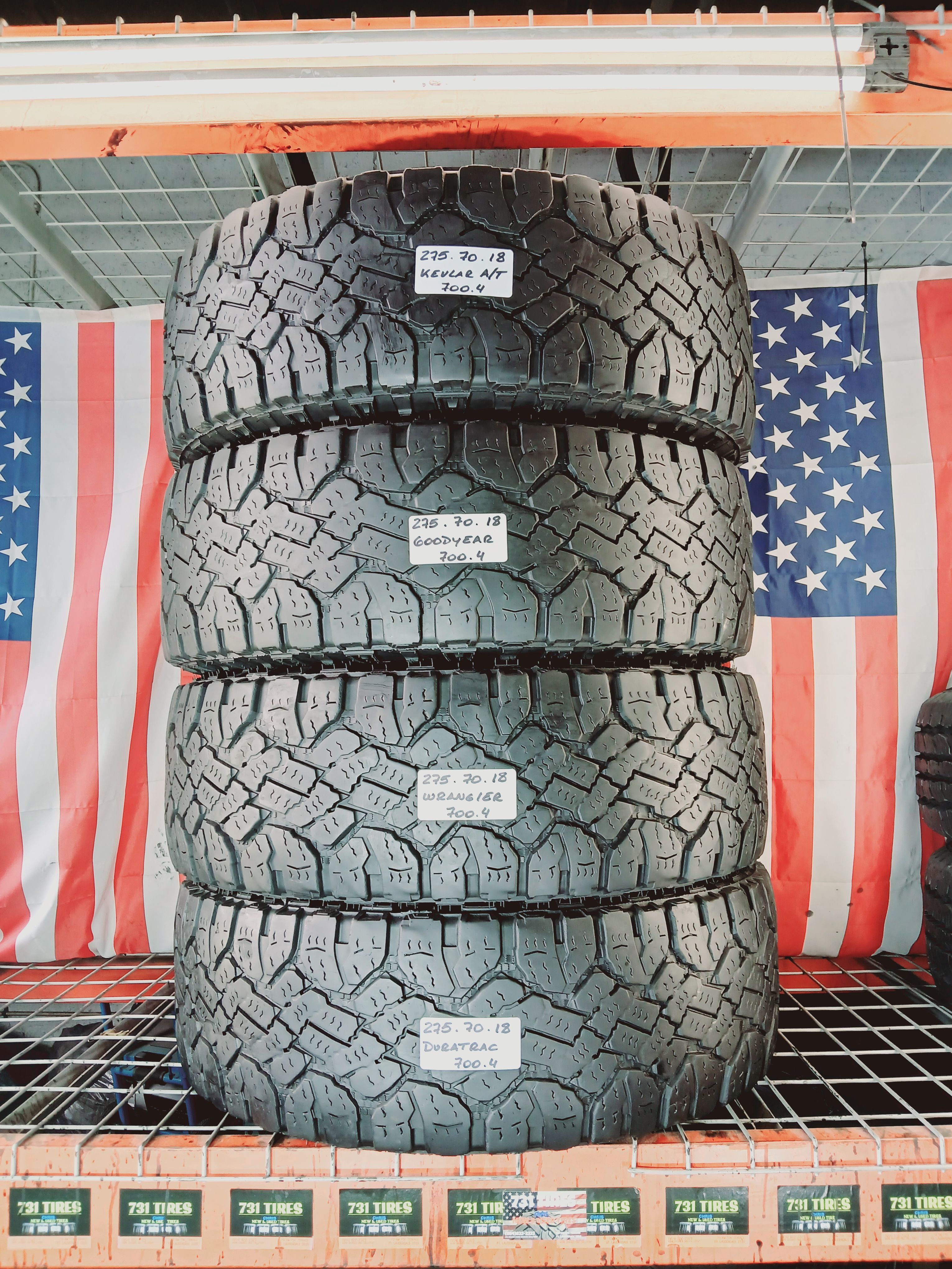 β 4 Used Tires LT275/70R18 GOODYEAR WRANGLER DURATRAC KEVLAR 275 70 18
