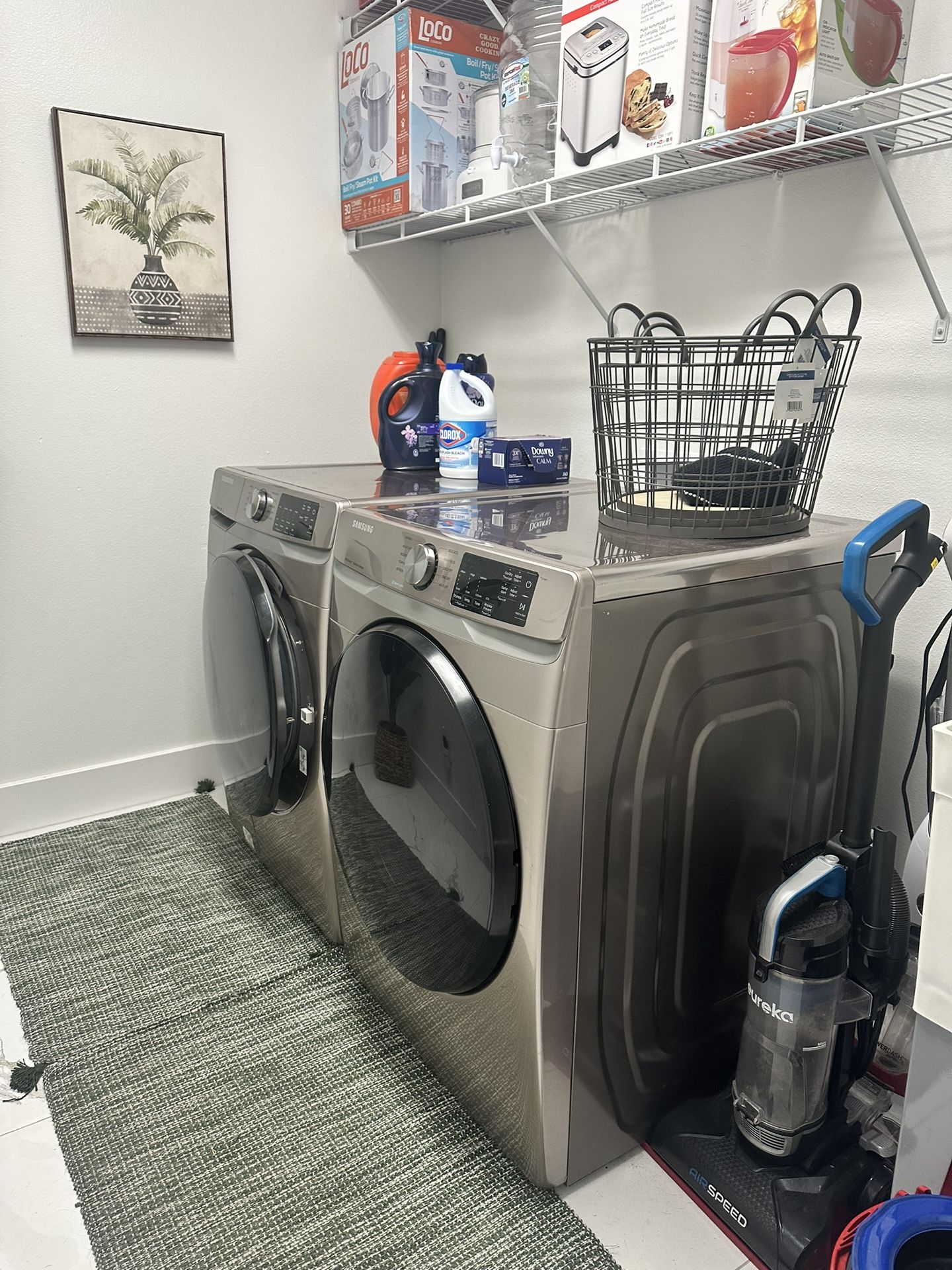 This beautiful Samsung front load washer and dryer set is champagne in color and works really well! It has slight wear on the top and sides, but nothing too noticeable. The set is electric with a three-prong plug. Very clean and sturdy machines. More details are in photos. Only serious inquiries please, OBO. Thanks for your interest!