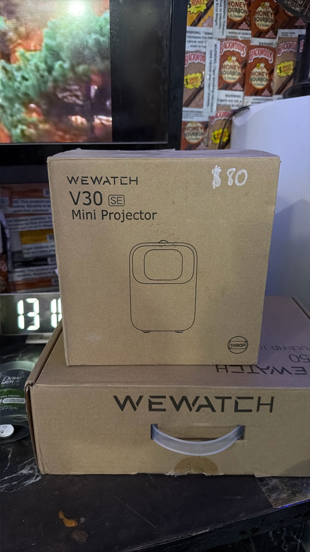 watching size from 40" to 120", suitable for indoor watching movies, playing games, listening to concerts, and enjoying a family happy time. WiFi Technology: It supports WiFi connections for iOS/Android systems. The projector can perfectly transfer movies/videos/photos from iOS/Android device to a big screen for projection display. Hi-fi Stereo Sound and Reduced Noise: Built-in 3W dual speakers, which can provide an excellent listening experience without external speakers. The home projector is equipped with an updated advanced silent cooling system that reduces the noise of the fan. Youthful and Fashionable Appearance Design: The rounded and cute appearance design gets rid of the rigid appearance design of traditional projectors. The appearance is very youthful and vigorous. Protect Your Eyes: Stunning real 1920x1080P resolution, provides a vivid image for videos and movies, ensuring the best video experience. Use diffuse reflection technology to protect your eyes while you are watching. Specification Projection: ANSI Brightness: 150 ANSI Lumens Standard Resolution: 1920*1080P, native 1080P Projection Ratio: 1.2:1 Projection Size: 40''-120'' Projection Distance: 4.3ft to 20.33ft Projection Method: Front/Rear Hardware: Display Technology: TFT LCD LCD Screen Size: 3.5'' Interface: USB 2.0 / HDMI / 3.5mm Earphone Out / Power Out Cooling fan: Built-in two Fans Software: Multi Screen Interactive: AirPlay / DLNA / Miracast WiFi: Support 2.4G Accessories: Remote Control: Infrared Ray Package Information: Package Size: 330*115*215mm Package Weight: 1.6KG What's in the box: 1 * V30 Projector 1 * Power Cable 1 * Remote Control(2xBatteries not include)