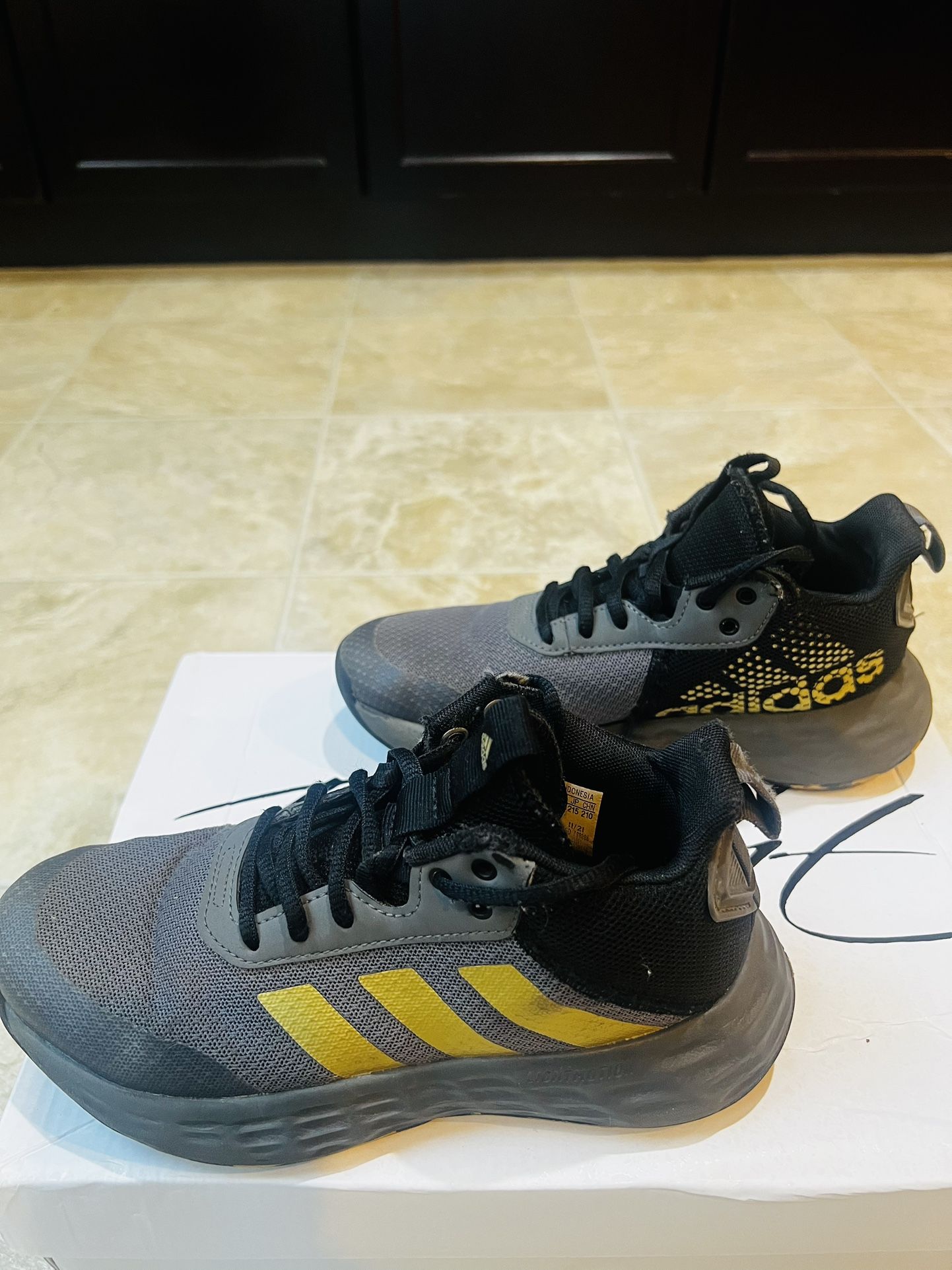 Gently Used Adidas Basketball Shoes Size 3Y Gray, Black and Gold They have been washed