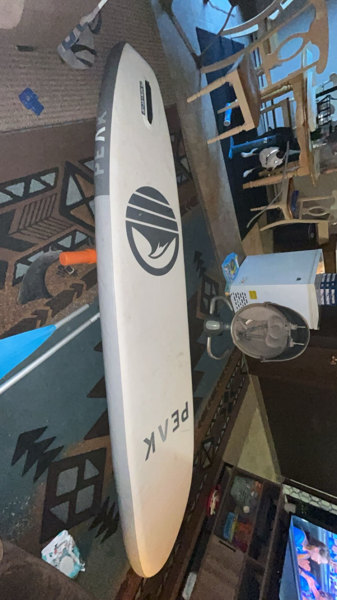 Used a total of 3 times the price is $450 will not take a low ball bought this originally for almost $1,000 it’s a great board shoot an offer, if it’s up it’s available!! items including: Peak paddle board bag (2 small holes in bag) Peak paddle board Paddle Patch kit Fin Pump and pump attachments