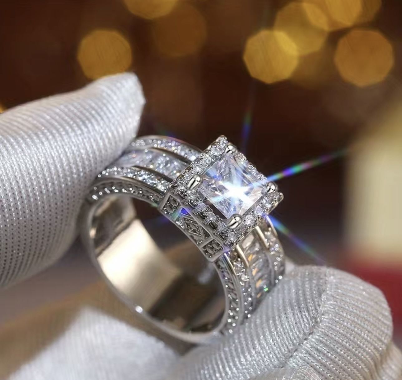 Shiny Halo Ring Inlaid Square Cut Zircon Elegant Ring Size 7