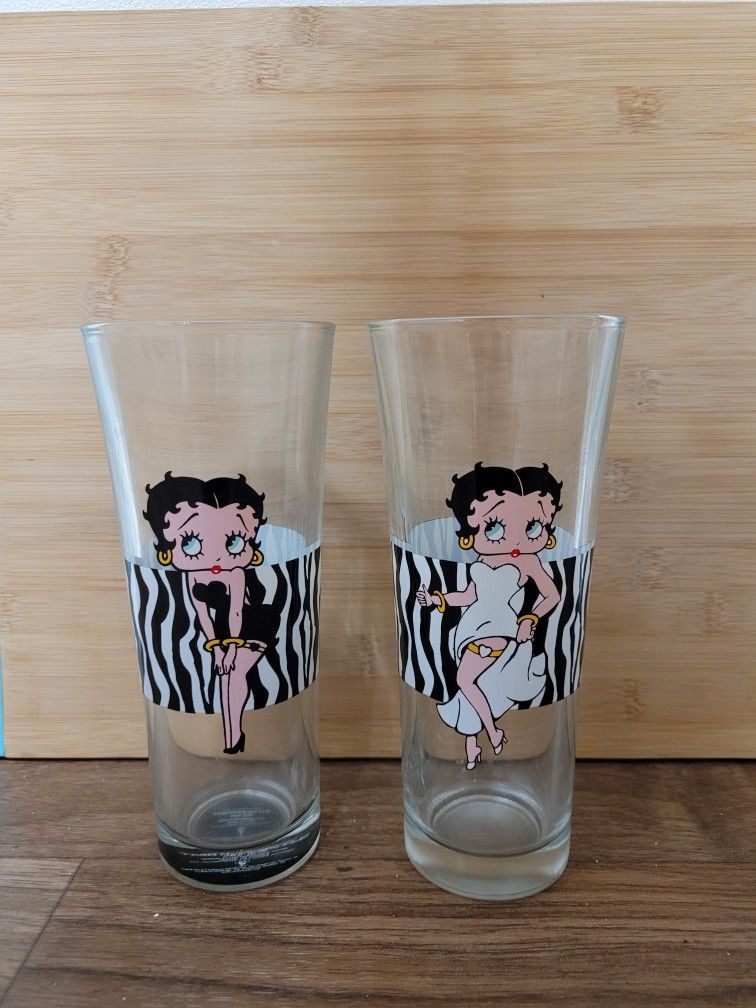 2pc Vintage Betty Boop Glass Cup Black/White