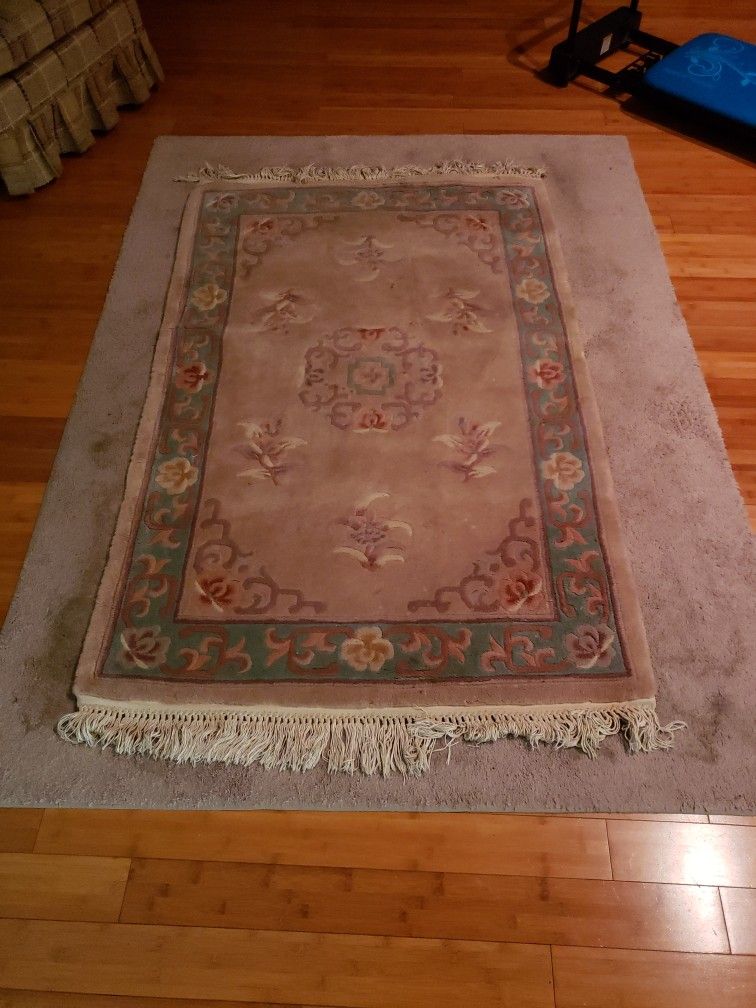 Beautiful Hand made all wool Chinese rug , in good condition. But needs to be cleaned has a few spots. Pickup only Size is 75" with fringe x 42"