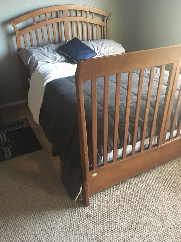 Full Size bed frame in great condition. NO mattress or foundation included, bed frame and head/footboard only. Bed has wood rails, headboard, footboard and plywood base, not planks. All parts to reassemble are included. Delivery available if not to far Price is firm. Very good quality bed and in great condition. If it’s listed, it’s still available Please look at my other offers too, thanks