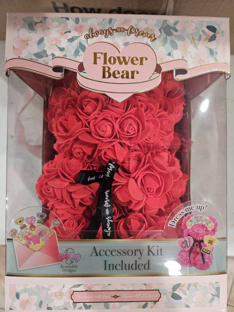 🌹 Flower Bear – Always & Forever 🌹 A sweet and thoughtful gift that never fades. This teddy bear is handmade with foam roses and comes brand new in the box with an accessory kit included. Perfect for Valentine’s, anniversaries, birthdays, or just to surprise someone special. Unlike real flowers, this one lasts forever 💝 📦 Ready for pickup! I also have other colors! Pink🩷 Dark Red❤️ Purple💜 Red♥️