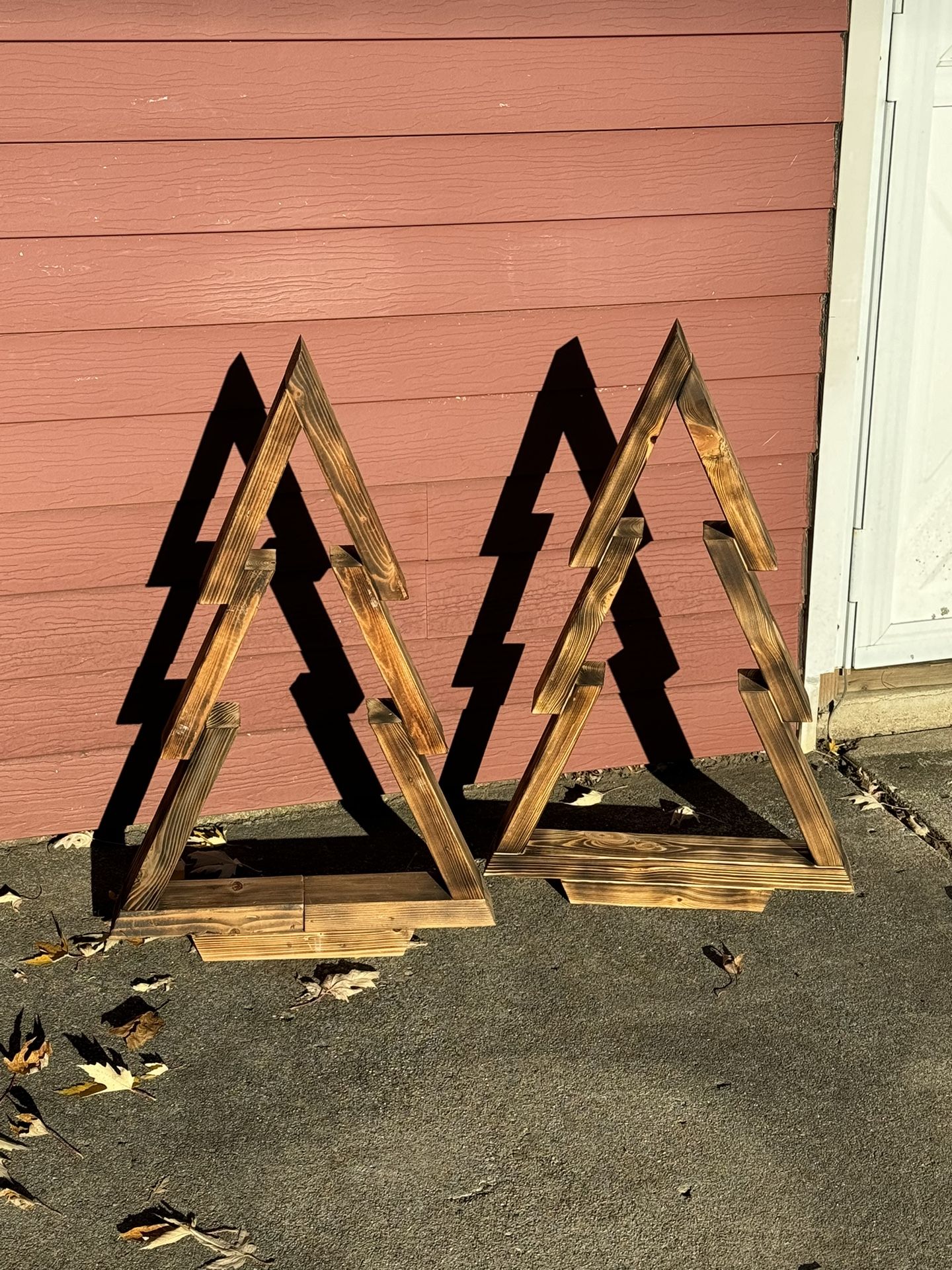 Indoor or outdoor your decision Made from 2x4 wood 33in tall and 22in wide at widest bottom point 30$ each Palatine pickup