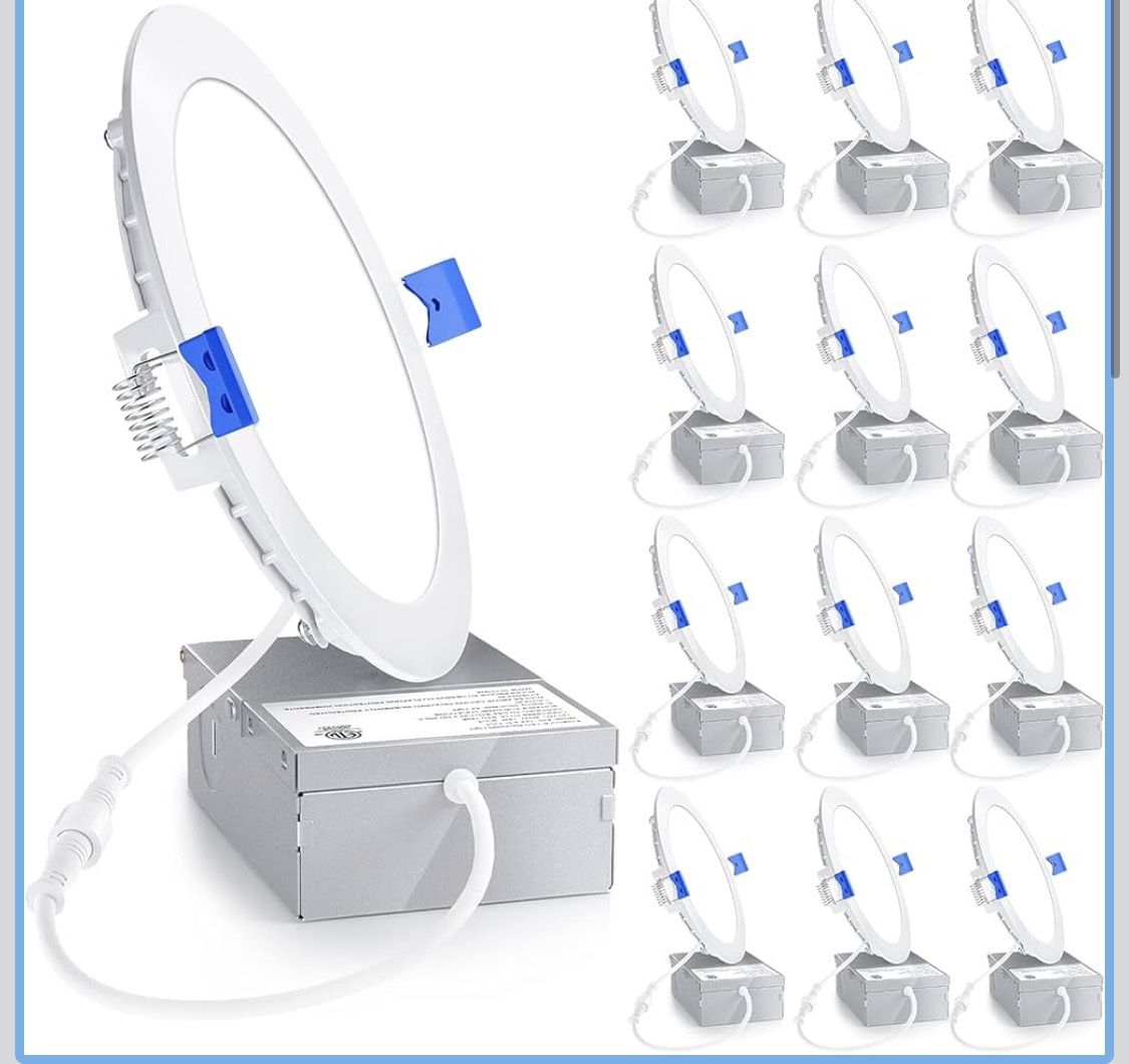 12 Pack 6 Inch LED Recessed Light, Dimmable, 5000K Daylight, 1200LM High Brightness, 12W 120V, Damp Rated, ERL-12X-ETL, Ultra-Thin Canless Wafer Light #01