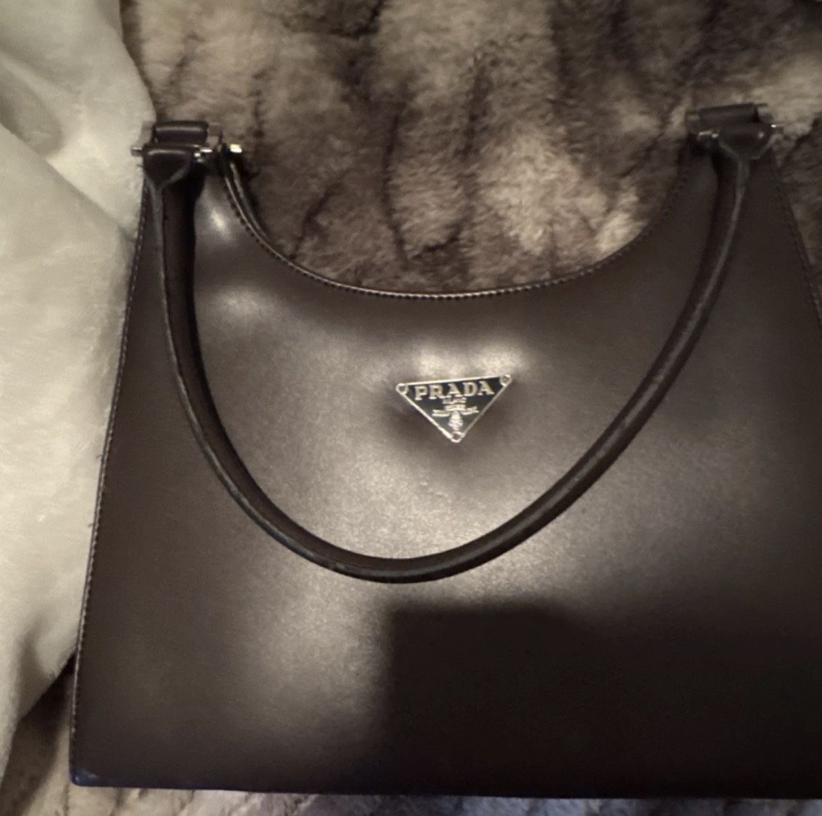 Prada Vintage Brown Leather Shoulder Bag Triangle Logo Y2K 2000s Made in Italy
