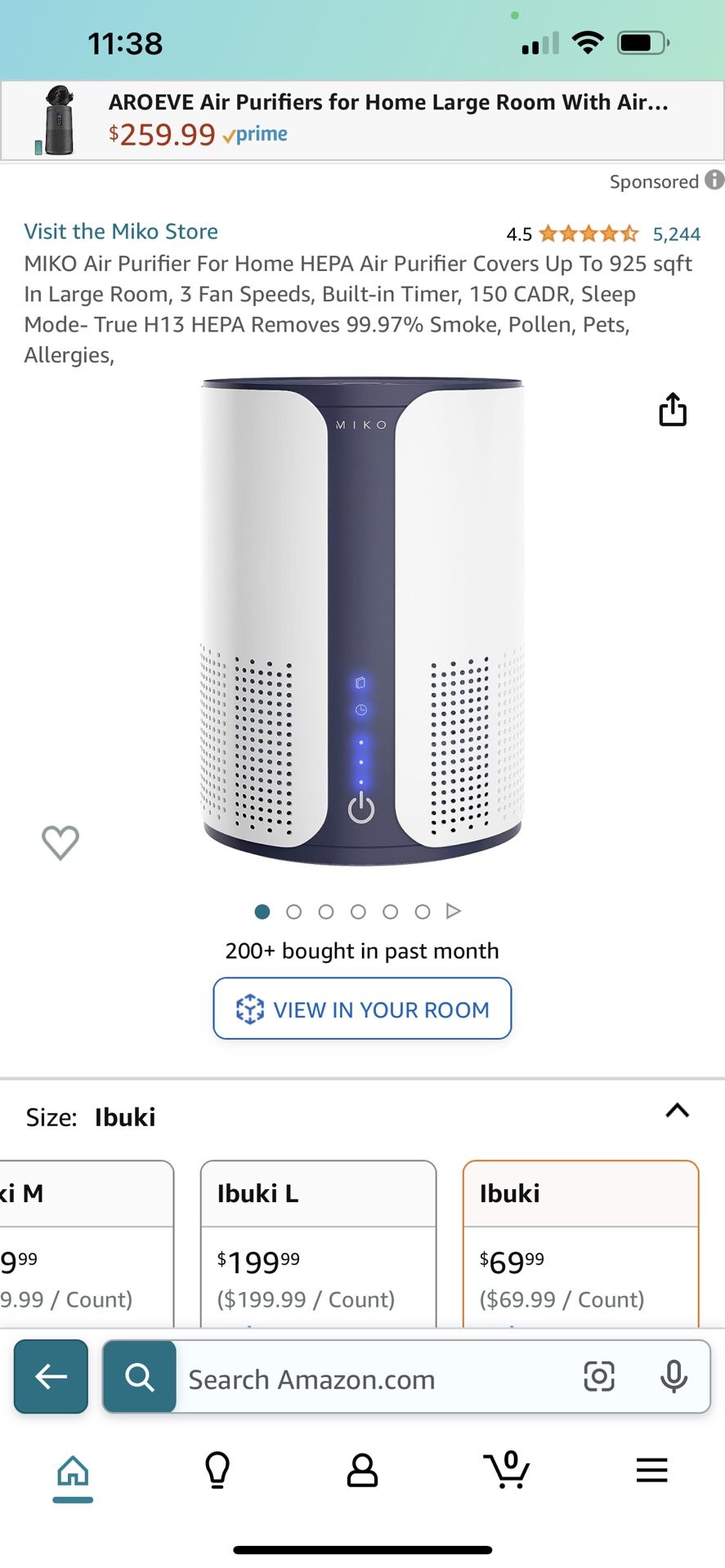 MIKO Air Purifier For Home HEPA Air Purifier Covers Up To 925 sqft In Large Room, 3 Fan Speeds, Built-in Timer, 150 CADR, Sleep Mode- True H13 HEPA Removes 99.97% Smoke, Pollen, Pets, Allergies, Brand new In box. $45