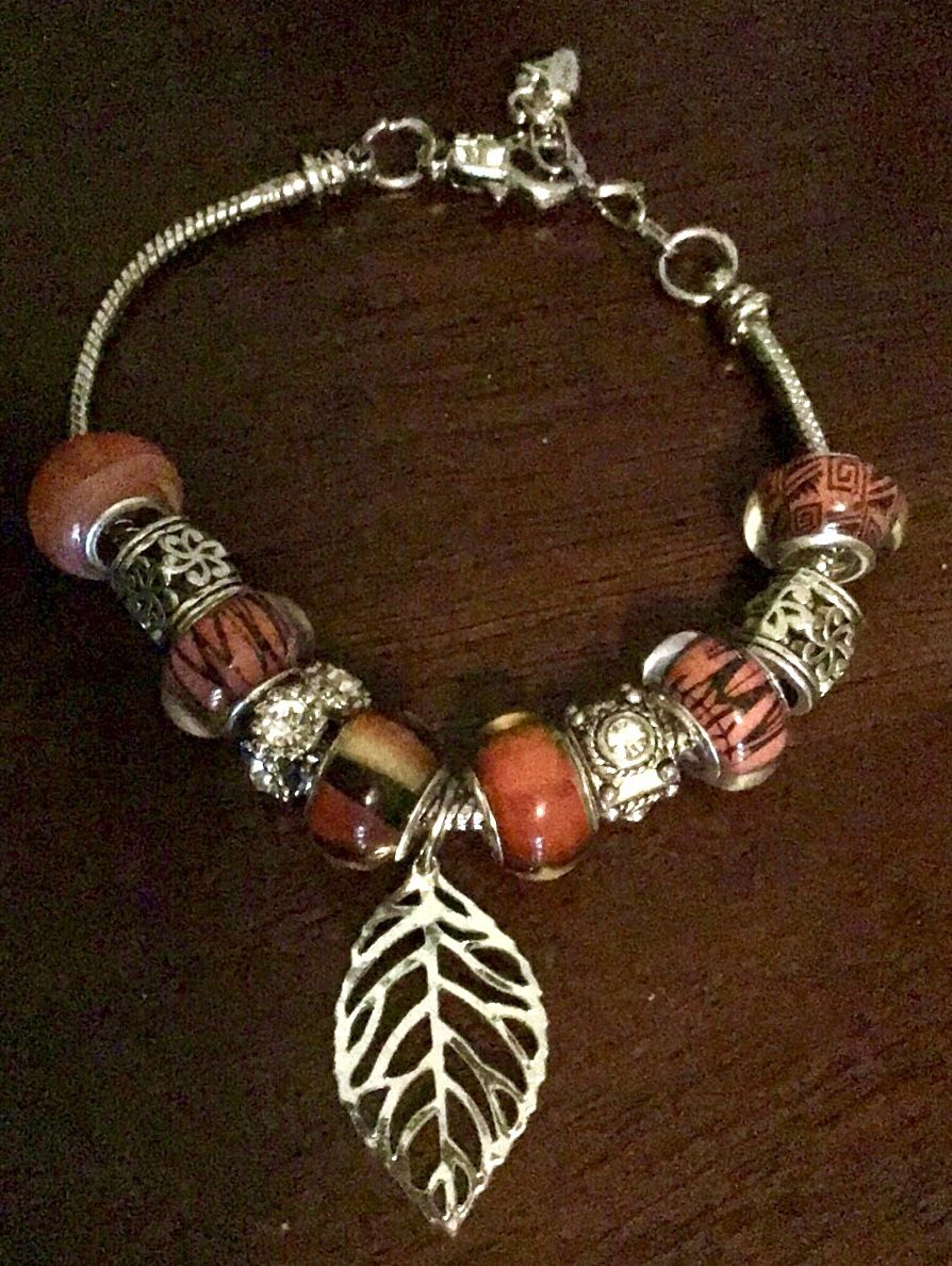 Beautiful autumn colors in a charm bracelet with European style beads Made by myself. Each bracelet is unique no two alike. If you have an idea of something you would like let me know and I will try to create it to the best of my ability. All orders are porch pick up or mail through OfferUp thank you