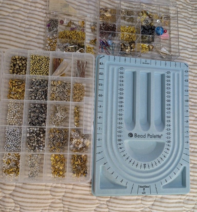 Silver and gold plated clasps, jump rings, ear wires, pins etc. Most of it was purchased at Joann Fabrics when they were still in business.