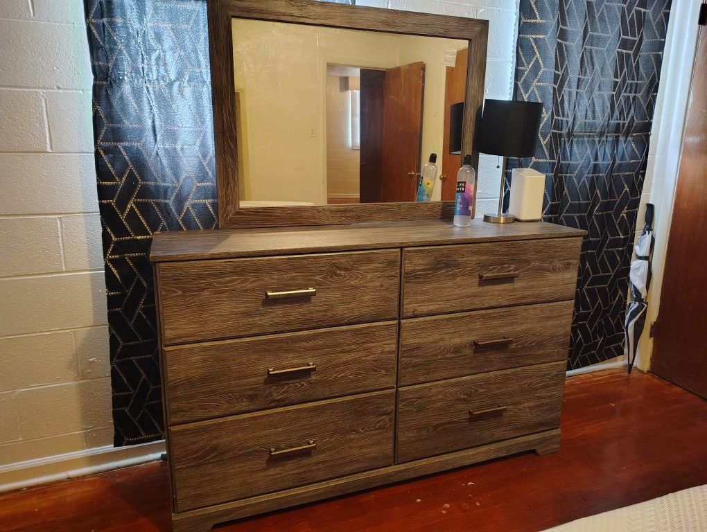 3pc bedroom set Dresser with mirror attach Queen size bed Night stand Also comes with all replacement screws nuts and bolts. This bag is still sealed nothing has been used. Retail this set cost is 2500 Asking 800 obo It is very well up kept Have not had long Still in plastic Serious Inquaries only