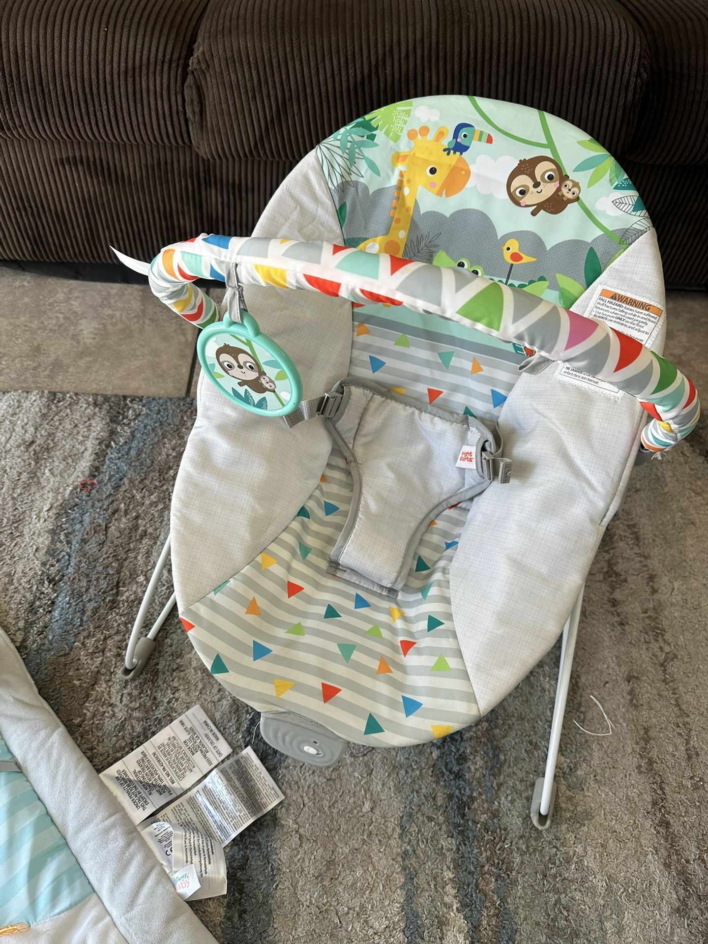New ish baby bouncer, missing teething leaf. Baby only used it hand full of times, not her cup of tea.