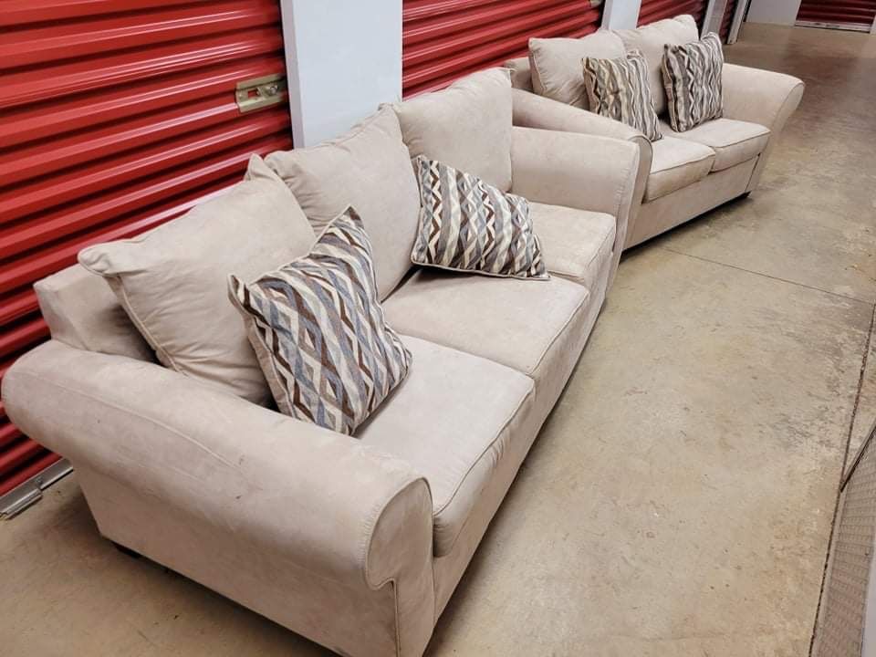 Great condition/ no rips or stains 88” L x 36” D x 31” H sofa 67” L x 36” D x 31” H loveseat