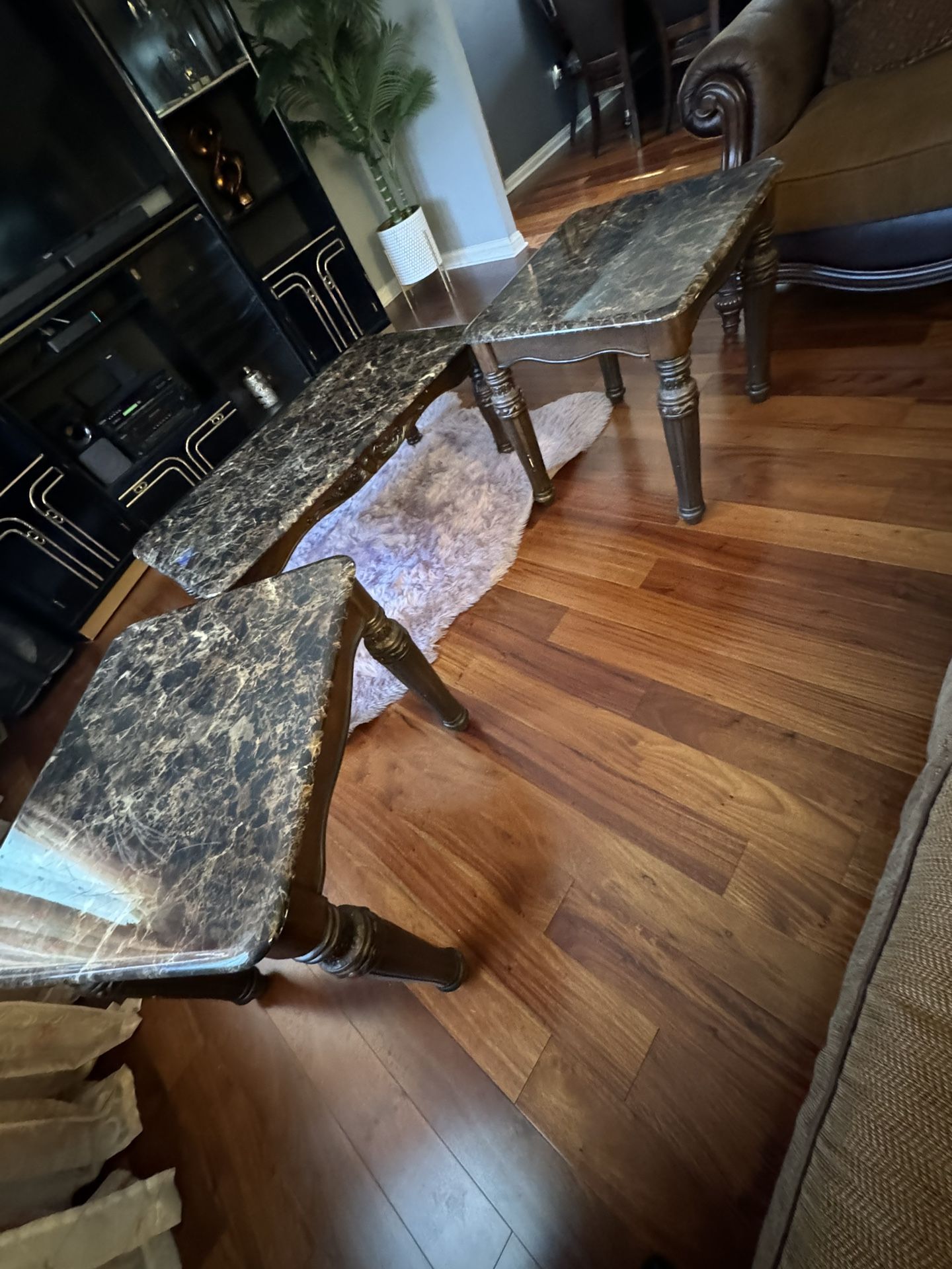 Signature Design by Ashley North Shore Traditional Faux Marble 3-Piece Table Set, Includes Coffee Table and 2 End Tables, Dark Brown GREAT FOR FAMILY SPACES: Rectangular coffee table measures 48" W x 26" D x 19" H. Each rectangular end table measures 24" W x 26" D x 24" H