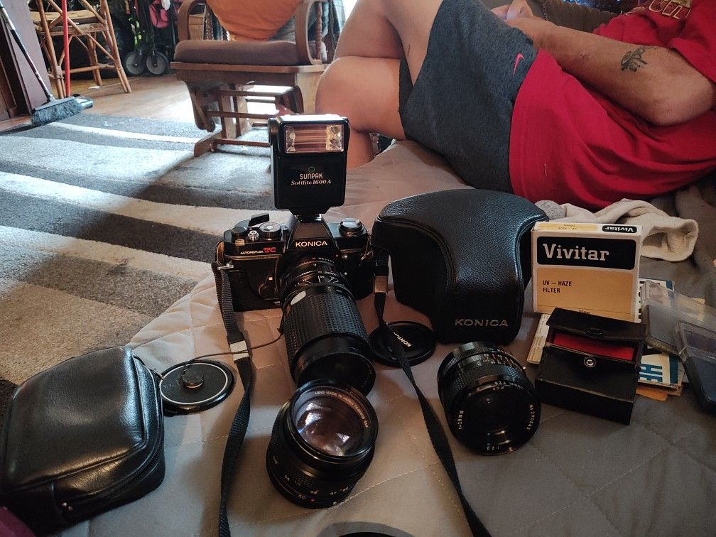Vintage KONICA AUTOFLEX TC. Comes with sunpak detachable flash system, 1- tokina 135 mm zoom lens. 1-tokina 28mm lens and 1-50 mm lens. And filter lenses from the cokin system.even have the original owners manual w/ Kodak lens cleaning papers. Every piece is in fantastic condition and works just as it did when it was brand new. This camera has been very well taken care of and protected from any possible https://offerup.co/faYXKzQFnY?$deeplink_path=/redirect/ it weather,drops or just handsy https://offerup.co/faYXKzQFnY?$deeplink_path=/redirect/ asking $200 o.b.o for everything.this is an amazing camera and takes beautiful pictures. It also comes with the tripod camerastand