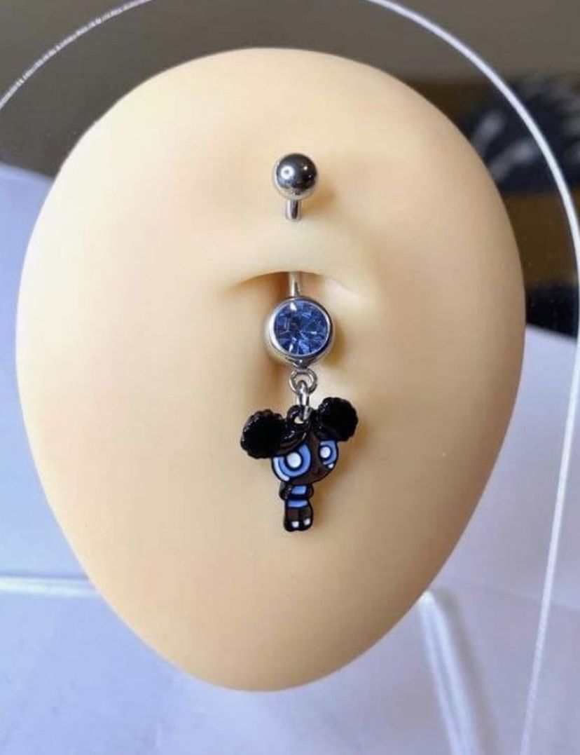 PowerPuff girls belly rings๐๐๐ $8 each check my page for more. ...(Located in Bakersfield ) I wonโt be selling the display models all belly rings are brand new in individual bags ..BGM this one is Bubbles ๐น