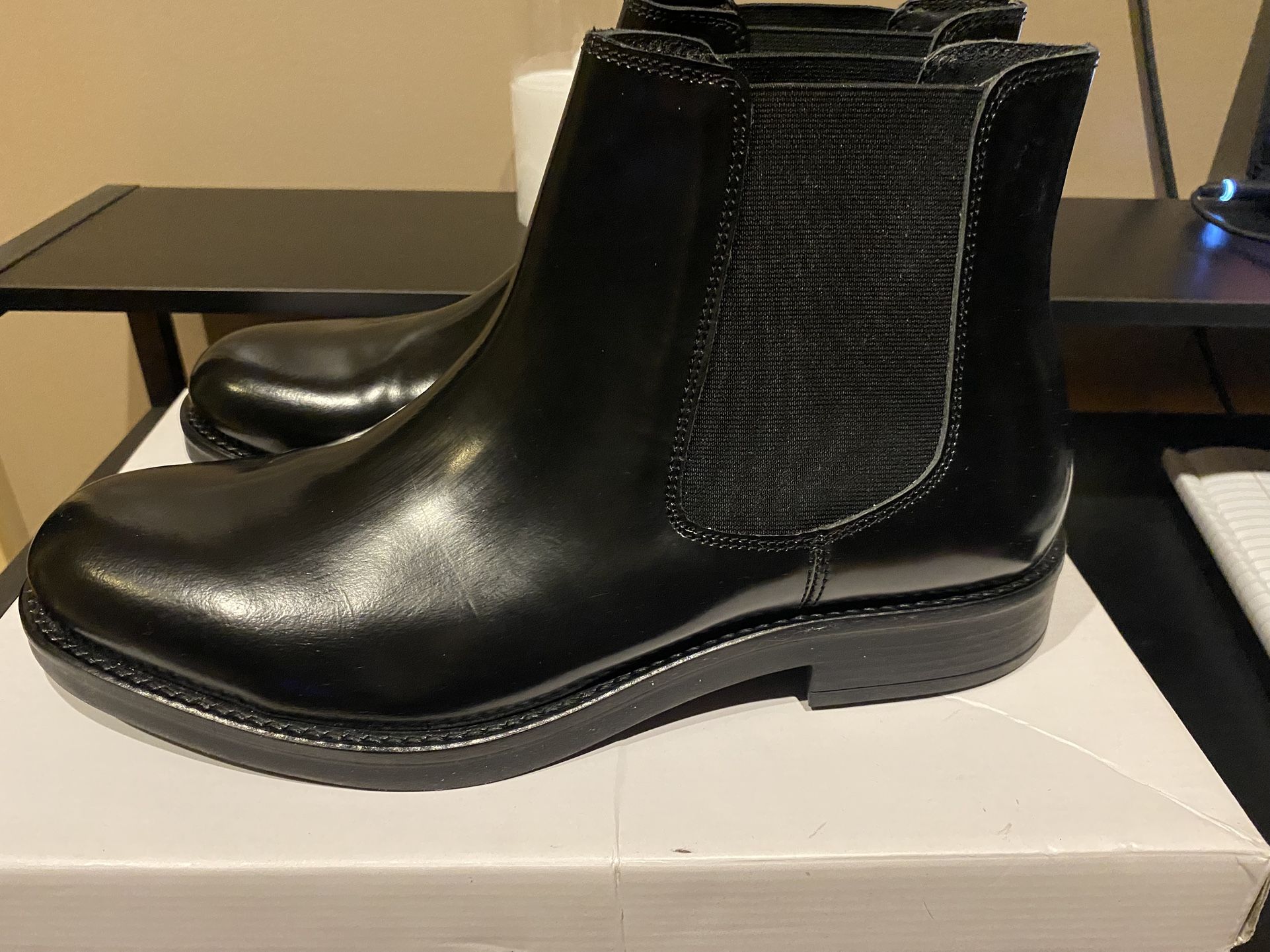 Black Leather Chelsea Boots. Comes in original box. In Excellent condition, Only worn once. Men’s size 7 or women’s 8.5. Retail $168.00