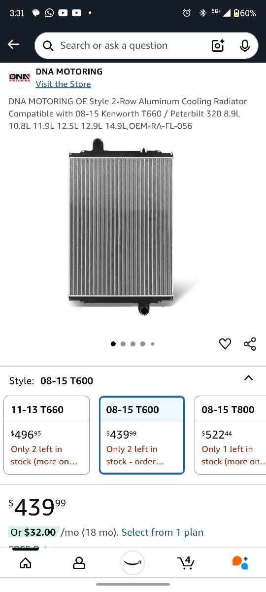 08-15 KENWORTH T660 / PETERBILT 320 RADIATOR