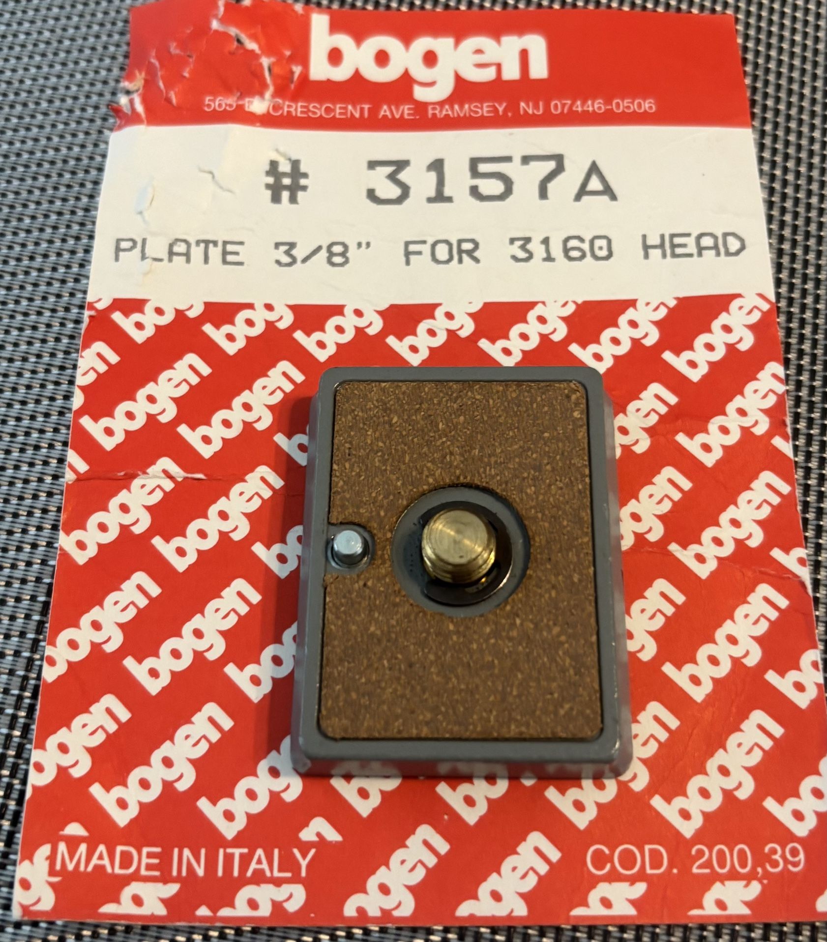 Bogen-Manfrotto model 3157A 3/8β replacement mount plate for 3160 tripod head - new, open package - currently selling online for $15 (+shipping) - $10. Bogey-Manfrotto model 3157A replacement mount plate for 3160 tripod head - new, open package - currently selling online for $15 (+shipping) - $10.