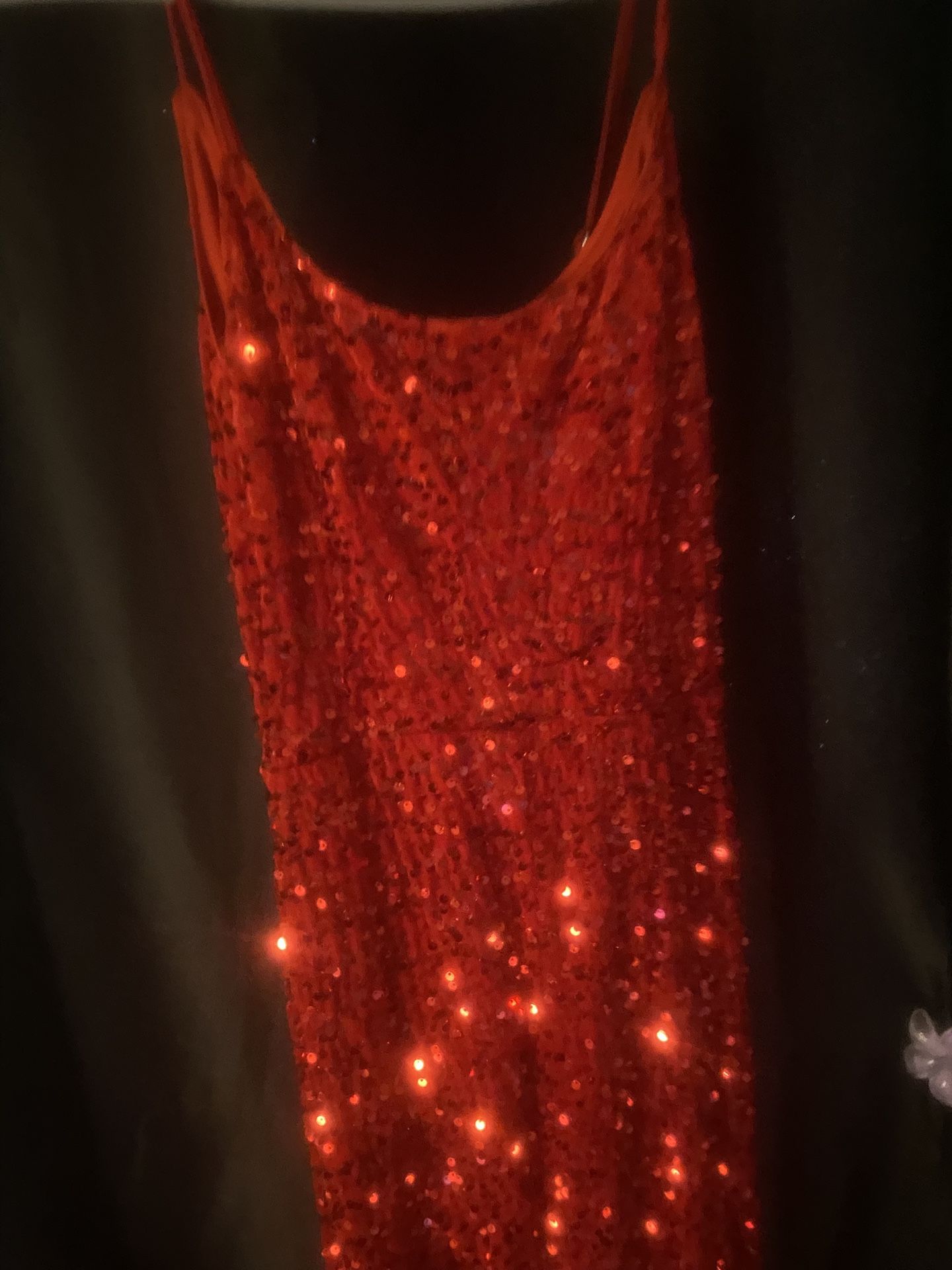 Red sequin beaded maxi dress with zipper back #glam #party