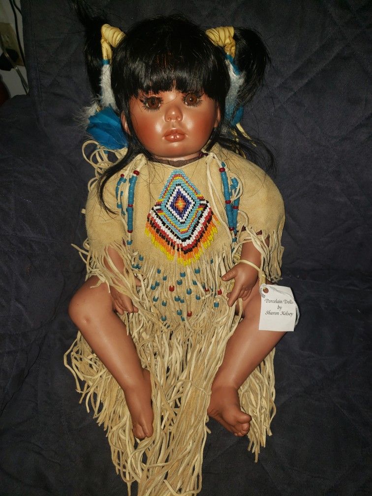 PORCELAIN DOLL HANDCRAFTED 14 inches sitting