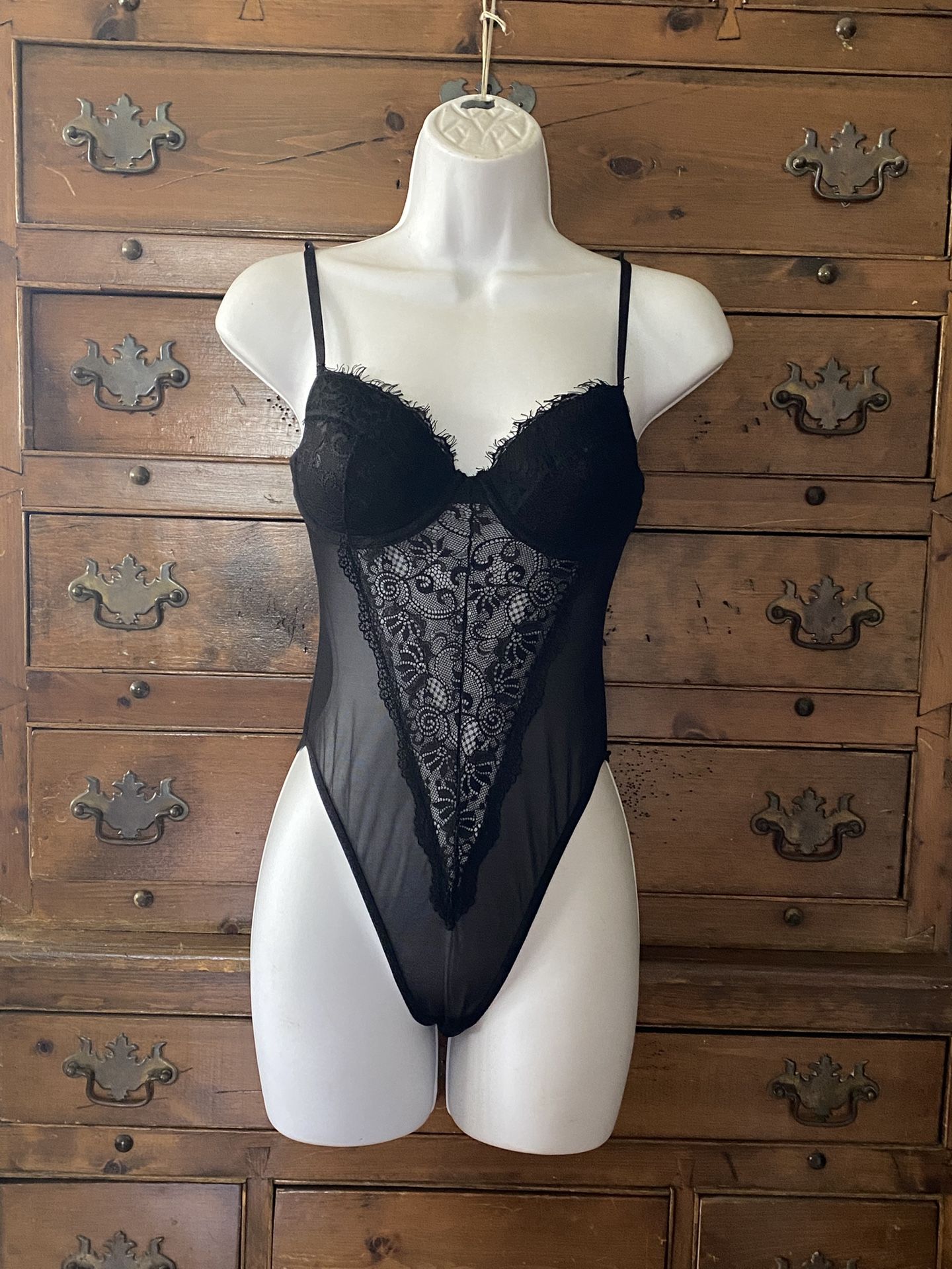 Woman’s Black Lace Teddy Bodysuit Size Small By Forever 21 New