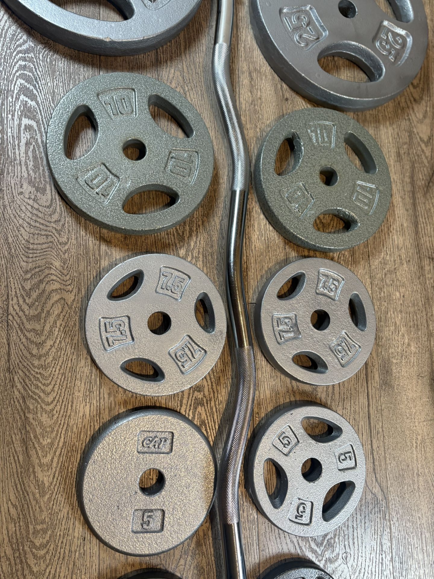 Standard NEW Curl Bar With CAP Cast Iron Plates Total: 117 lbs