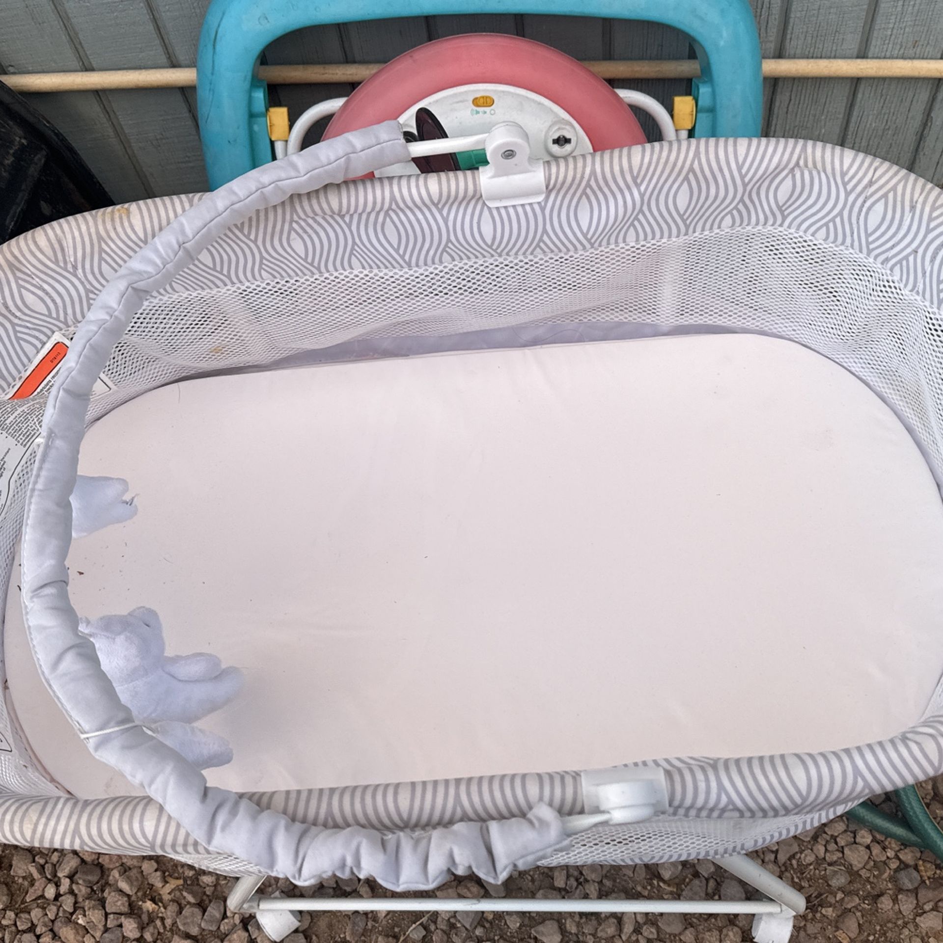 I have a baby bassinet tht i barley used its a bit dirtyy but i can clean it before u pick up , also the music doesnt work on it but everything else is fine !