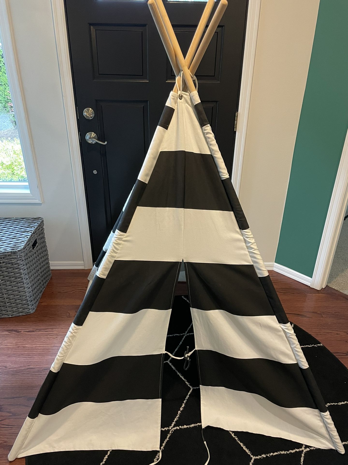 Land of Nod "A Teepee To Call Your Own" in Black White Stripe Overall DimensionsWidth: 47" Depth: 47" Height: 63" Good preowned condition, from smoke and pet free home. Local pickup in Renton Fairwood area near Meeker Middle School.
