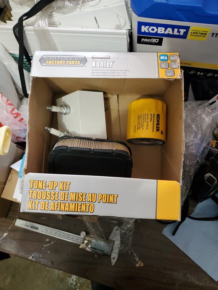 New never used, include 1 oil filter, 2 spark plugs and one air filter, no engine oil included. for Kohler 20-27hp Courage SV-Twin engine.