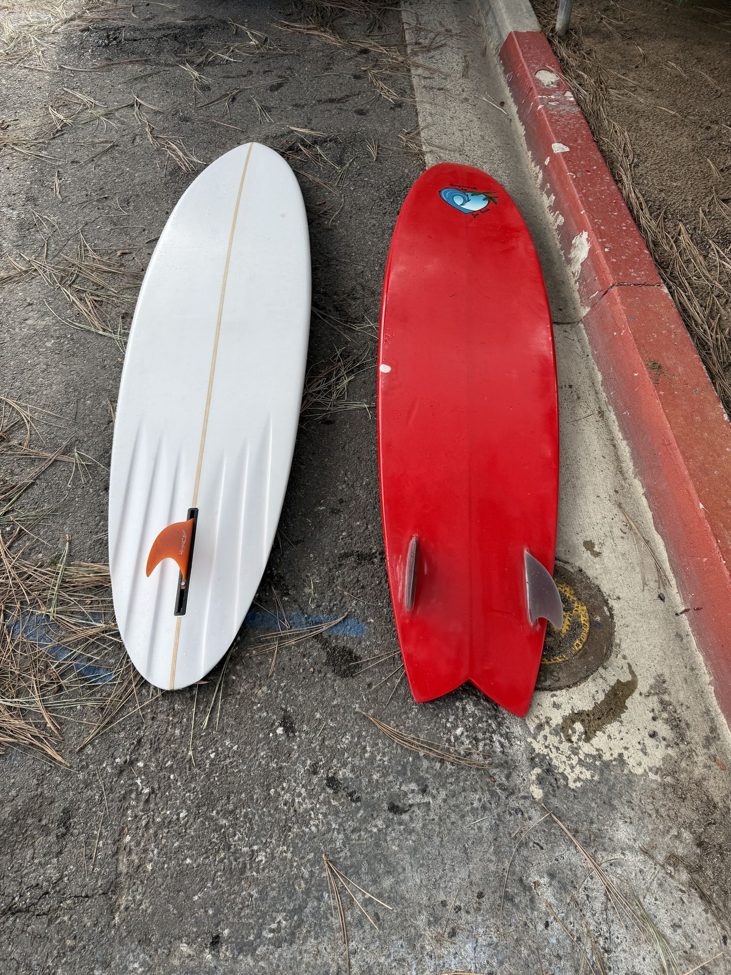 THE RED ONE! If you’re looking for something that’s just a different feel for the better, this is it. Longer but also narrower. Super cool shape that I’ve had the pleasure of surfing. Have surfed it in seriously all conditions. Great mid length and a great gun. Honestly bummed to see it go, but I need cash. 7’0 20”
