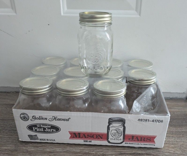 12 Golden Harvest Pint Canning Jars New In Box