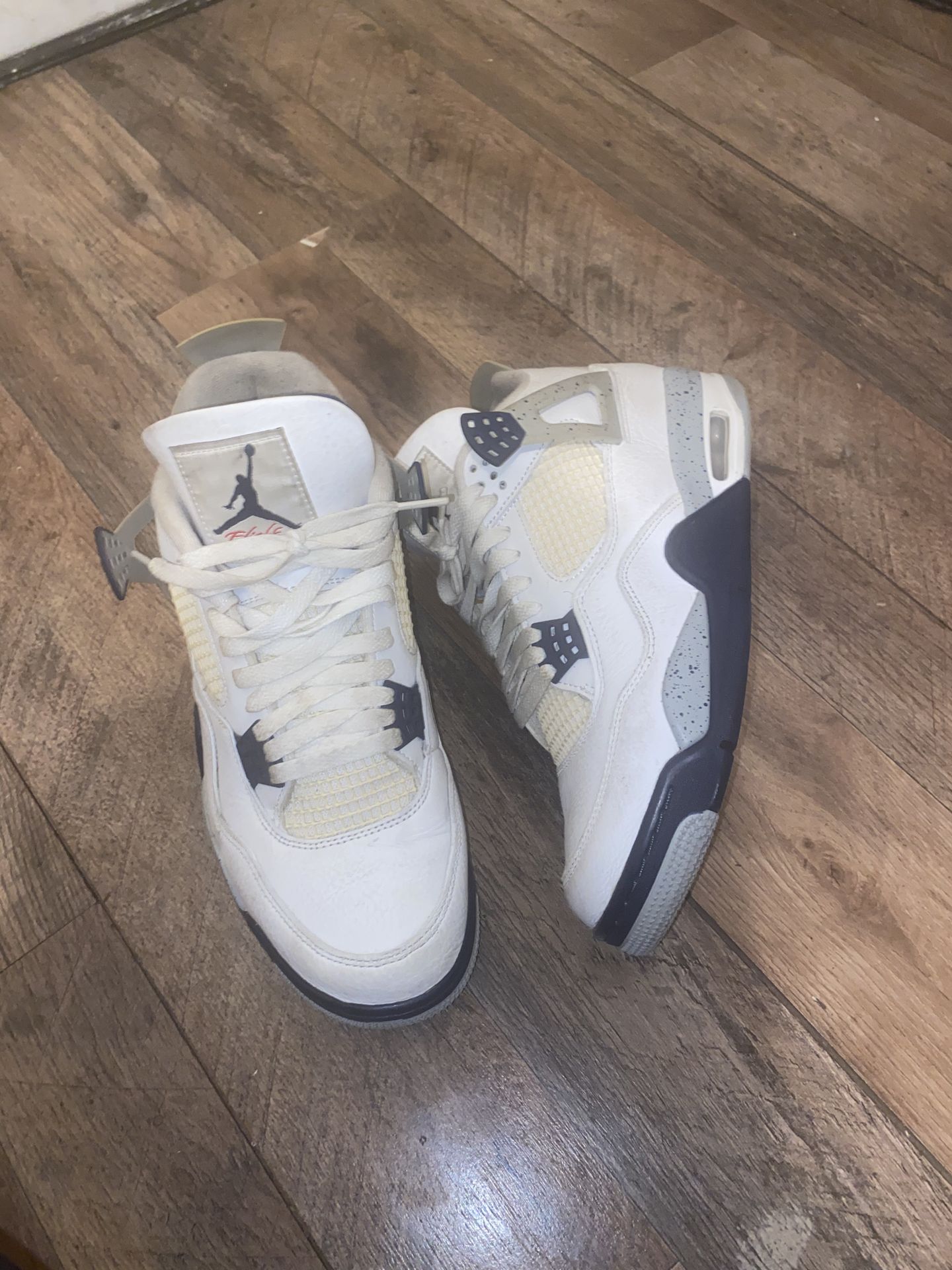 SIZE: 10.5 jordan 4s tryna sell they have ben worn thats why they are so cheap but im sure u can clean them and make more. dont come with box and im open to offers