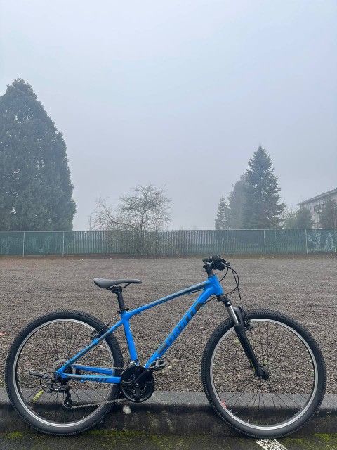 A reliable and lightweight hardtail mountain bike, perfect for beginners, casual trail riding, or everyday use. Easy to handle and comfortable, especially for smaller riders.(63) π§ Specs & Features β’ Frame: Lightweight aluminum β’ Wheel Size: 26β β’ Fork: Front suspension fork for smoother rides β’ Drivetrain: Shimano Tourney 21-speed (3Γ7) β’ Shifting: Simple and dependable Shimano components β’ Extras: Kickstand included β’ Condition: Excellent shape, everything works as it should π Frame Size & Rider Height β’ Frame Size: XS β’ Best fit for riders approx. 4β10β β 5β4β (147 β 163 cm) A great all-around mountain bike β ideal for city riding, light trails, or anyone looking for a dependable and affordable MTB π΅ββοΈ