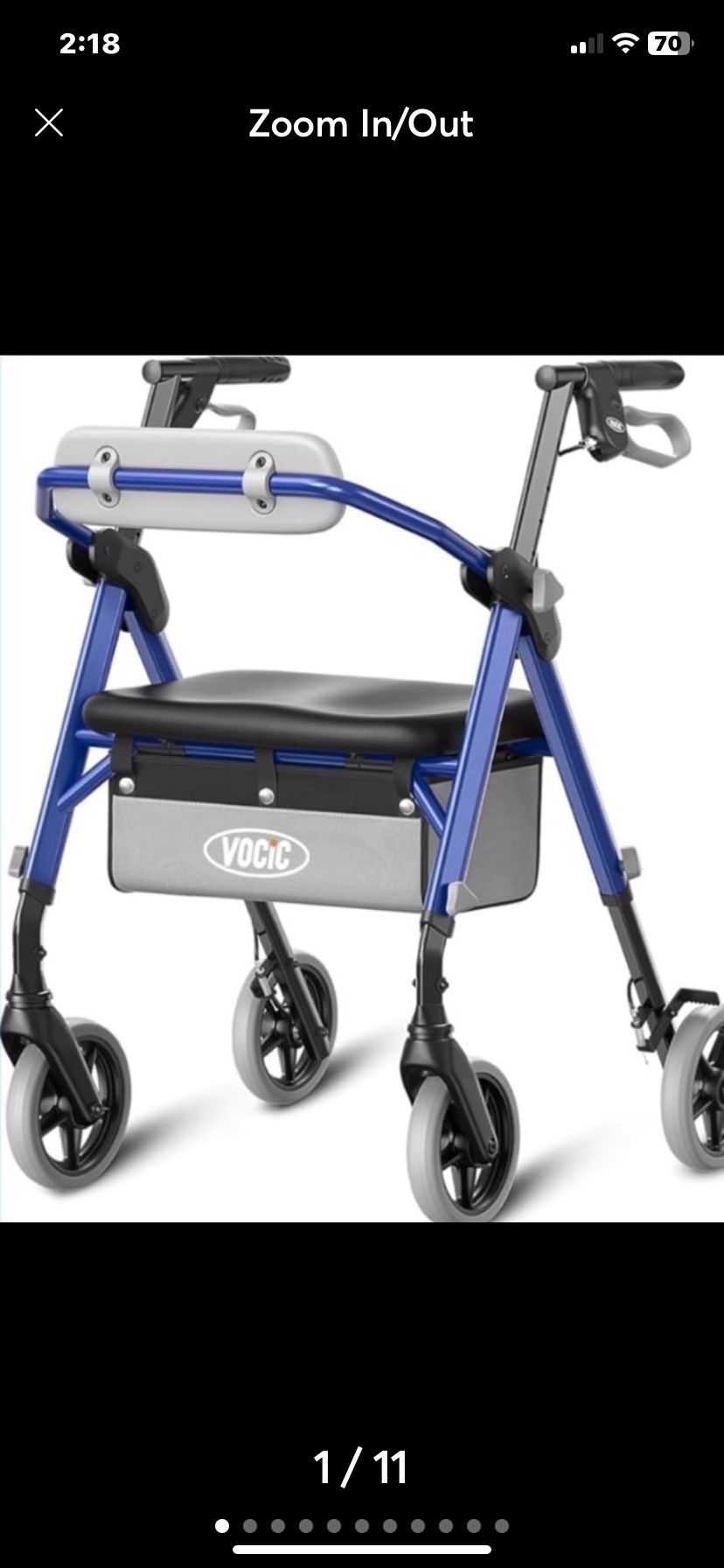 New! “VOCIC Z11” Rollator Walker Blue constructed with a multi-triangular carbon steel frame & rigorously tested multifaceted cut tubing. • Engineered to provide industrial-grade stability during use. • Supports an exceptional weight capacity of up to 380 pounds. • Features a modern X-design with advanced structural engineering and sleek aesthetics. • Includes diamond-inspired light-reflecting tubing for enhanced visibility. • Equipped with an ergonomic zero-pressure cushion for comfortable seating. • Designed with dual-arc back support for added comfort. • Features butterfly-shaped grips for all-day comfort and secure handling. • Offers 5-level height adjustment, ranging from 36.6 inches to 42.9 inches, for personalized fit. • Incorporates a high-sensitivity dual-brake system for effortless control and safety. • Designed to be lightweight and foldable for easy transport and convenient storage.