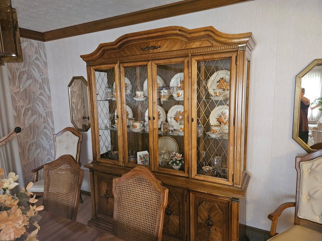 Beautiful large dining room China Cabinet. Drawers and bottom cabinets. Beautiful piece of furniture. Stanley is the manufacturer.