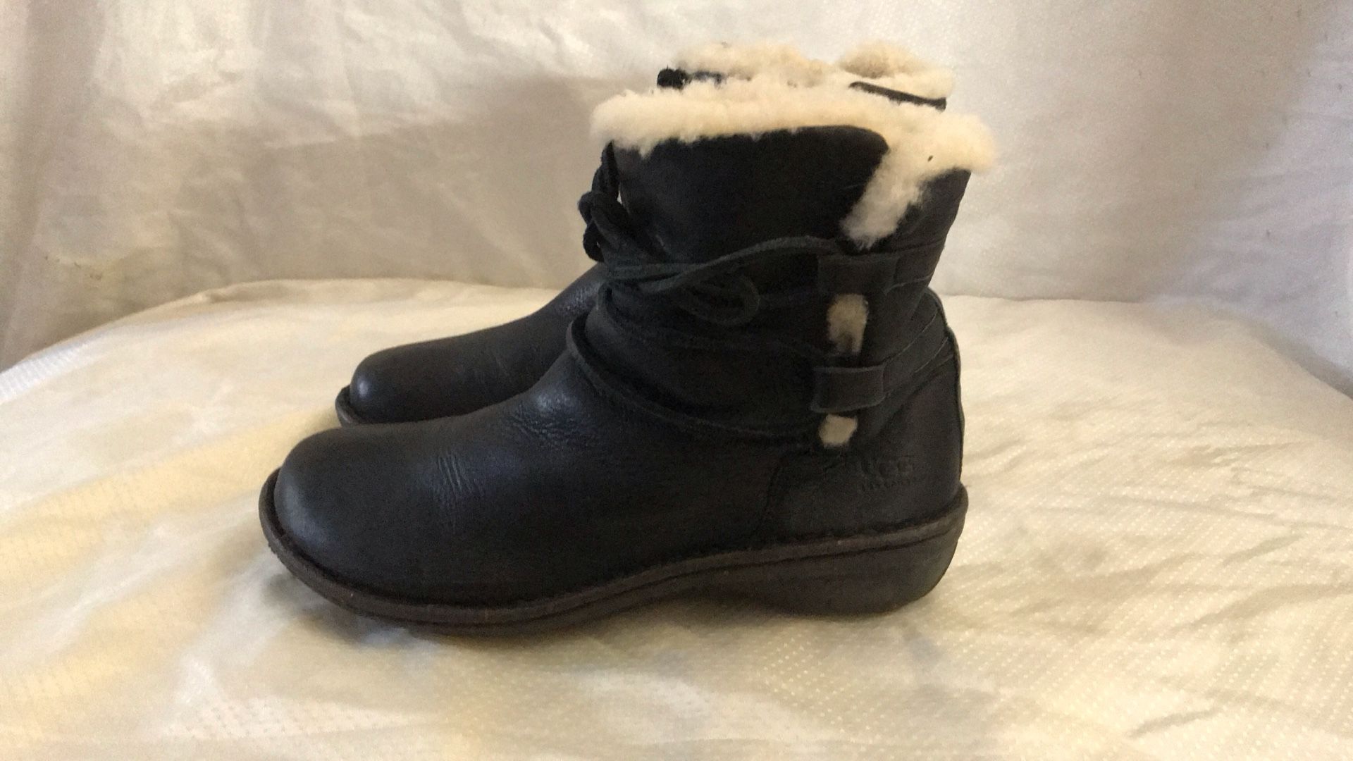 UGG Leather and Sheepskin Women Size 7 Shearling Black Boots