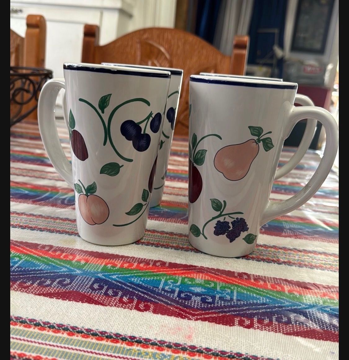 New open box. 4 tall mugs orchard medley 4 tazas altas para cafe Nuevas. Orchard Medley