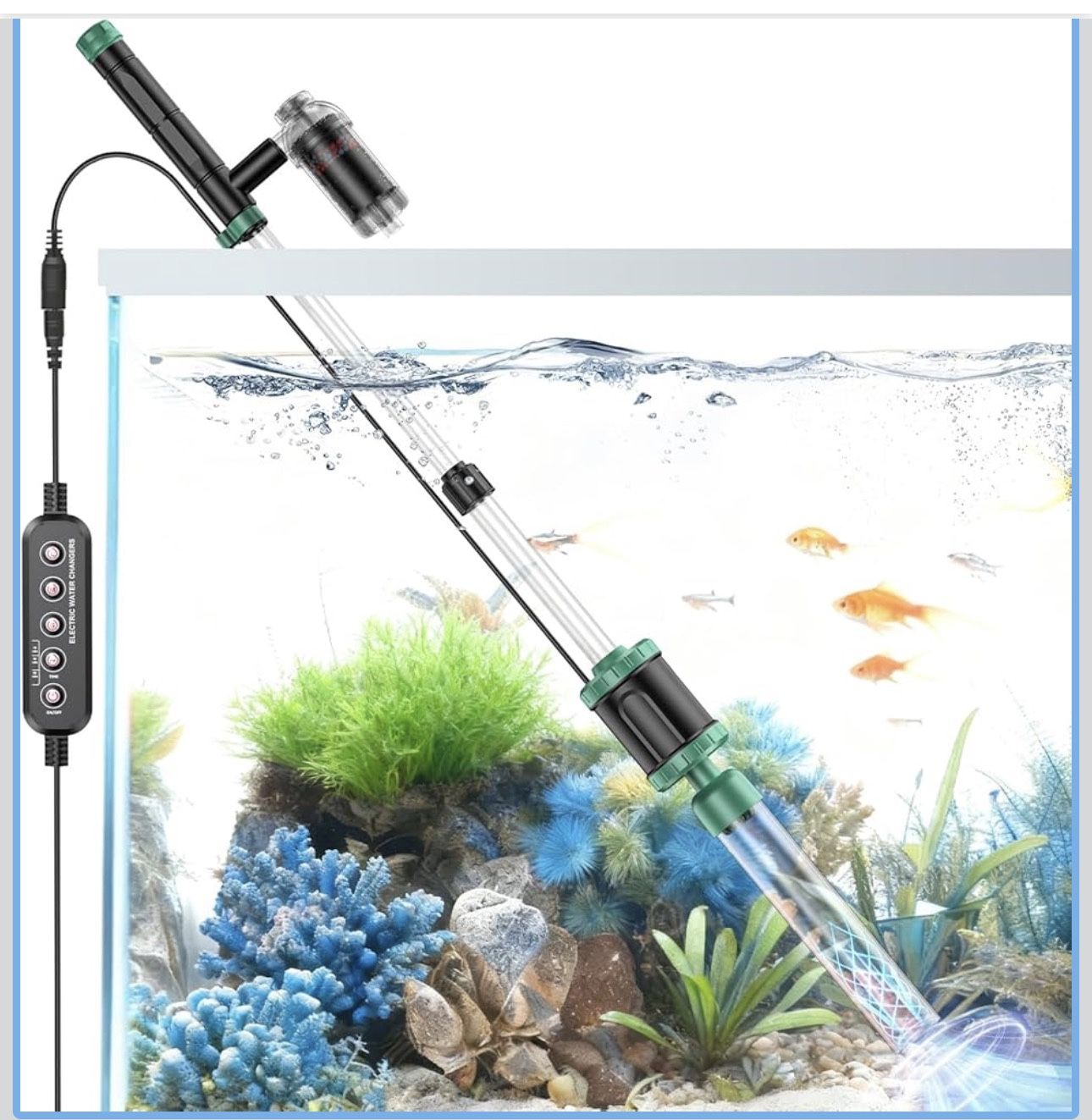 New-AKKEE Aquarium Vacuum Gravel Cleaner, 36W Electric Fish Tank Cleaner Vacuum, 8 in 1 Multifunctional Aquarium Cleaner for Automatic Water Change, W