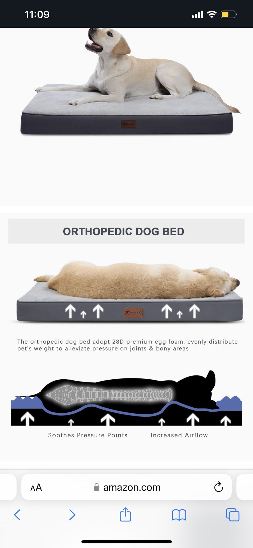 Memory foam. Small bed for you friend , orthopedic to rest good .size is 35 long 23 wide and 3 high